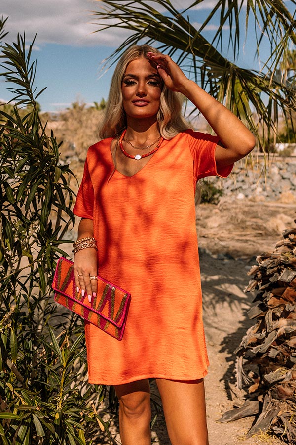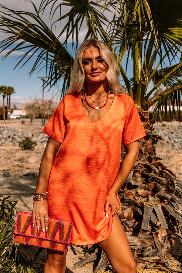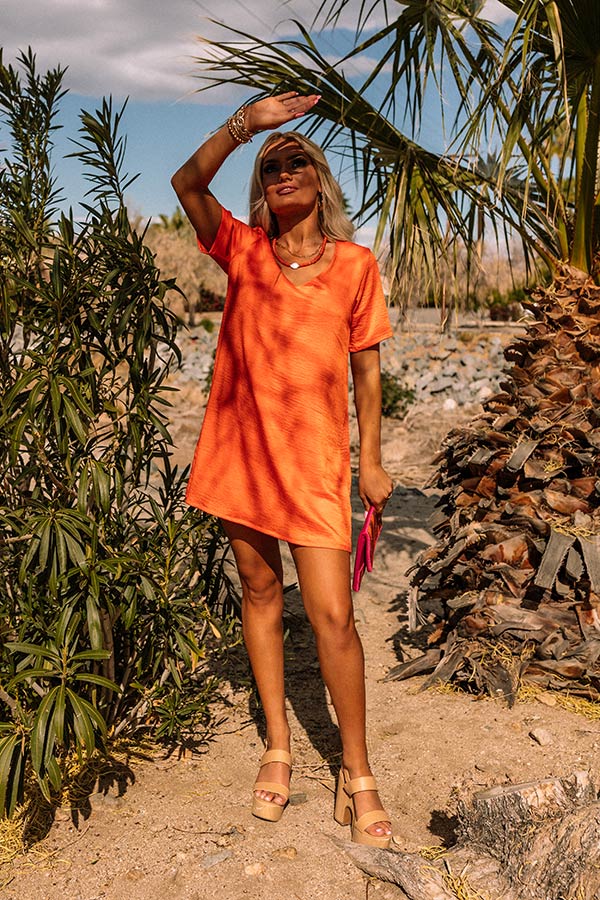 Stay simple but stylish in our basic tangerine colored 'Clever And Kind Shift Dress' featuring lightweight material, a scooped v-cut neckline, short sleeves, and a relaxed silhouette that falls into a straight mid-thigh length hemline!