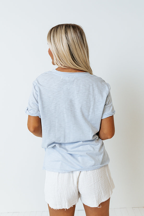 Keep your look basic but no less stylish in our classic sky blue 'Clever And Kind Tee' featuring lightweight comfortable material, a v-cut neckline, short sleeves, a single accent chest pocket, and a relaxed silhouette that ends in a rounded hemline! on products