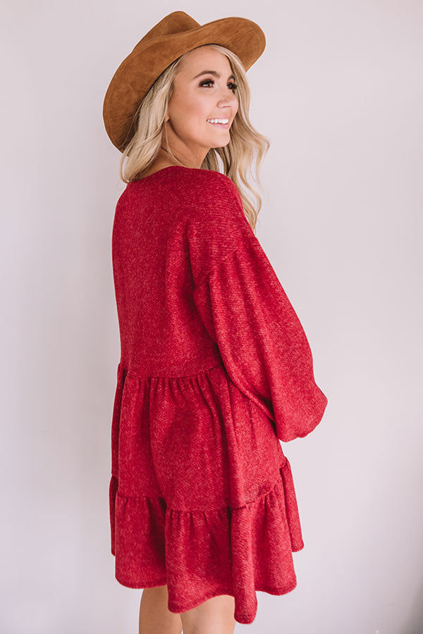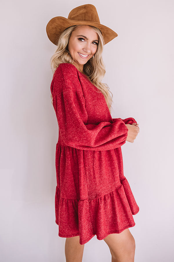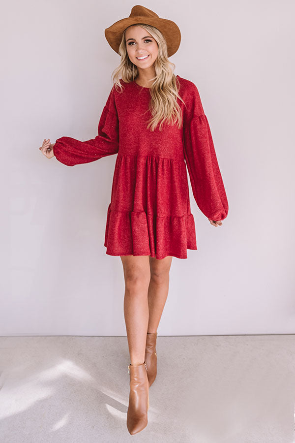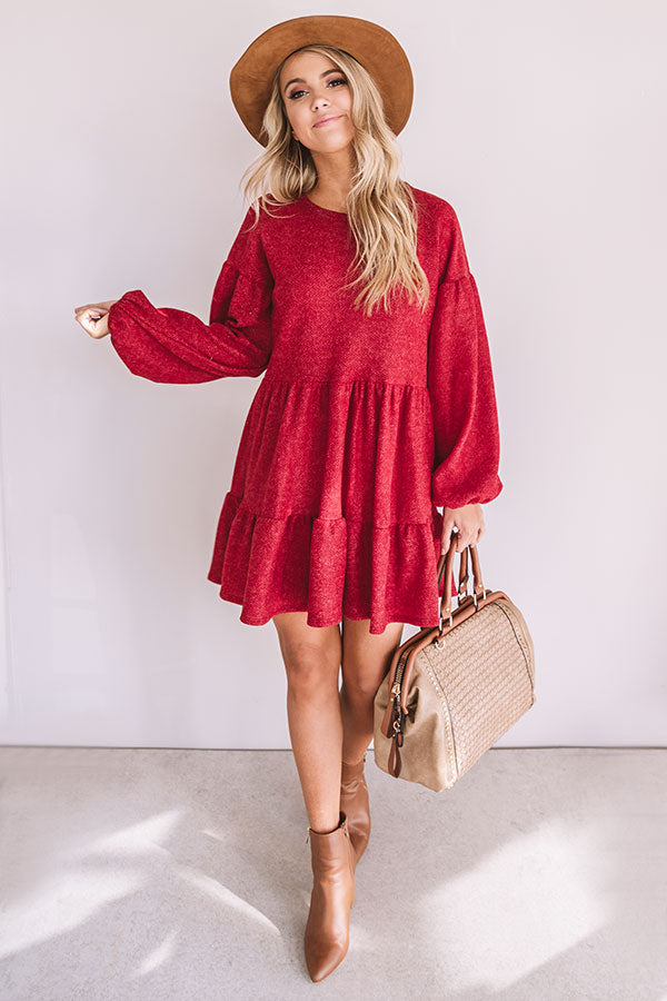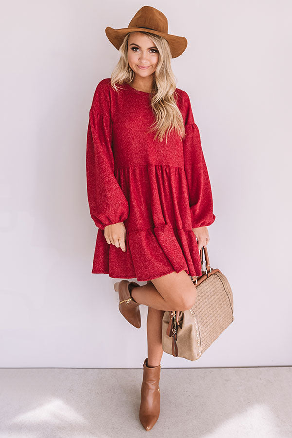 We have no doubt this crimson colored shift dress will be "close to your heart" with its ultra soft and lightweight material, high rounded neckline, long oversized bishop sleeves with fitted elastic banded cuffs, and a relaxed tiered silhouette that falls into an uneven mid-thigh length hemline! This charming piece can be styled a variety of ways, like with a neutral booties, tote, and faux suede hat, or it can be worn with "The Seraphina Faux Leather Wedge in Grey" and our "Summer in Versailles Earrings in Grey!" Measurements
