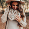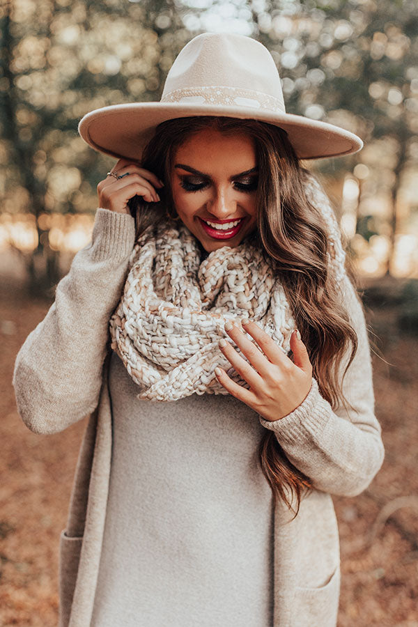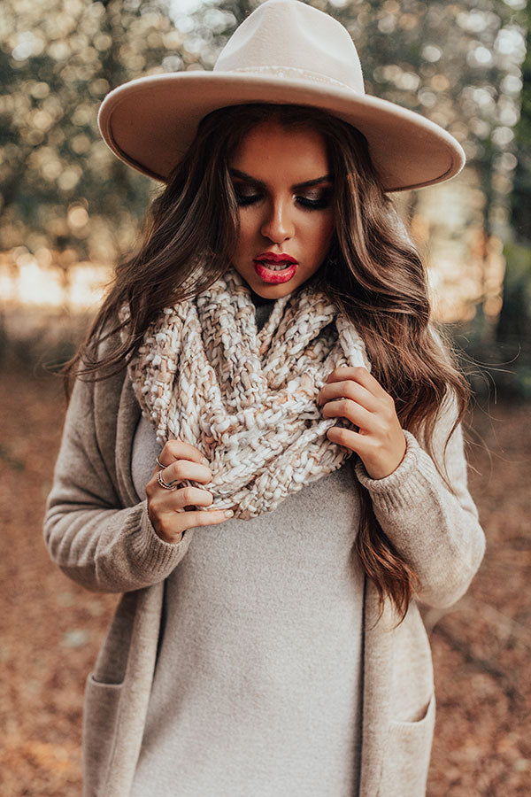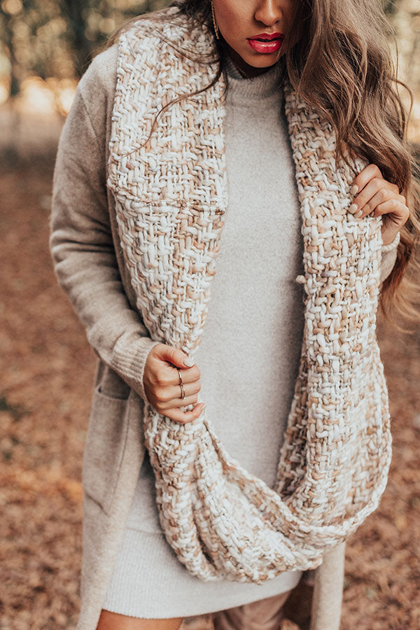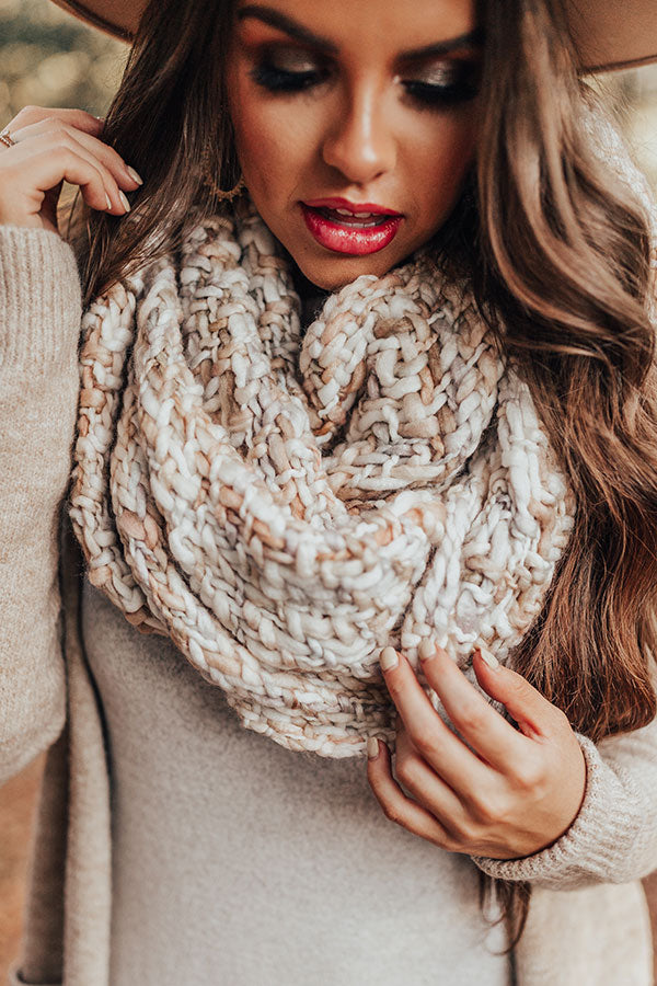 There is no better way to get closer to cuddles than by wrapping up with this adorable neutral hued infinity scarf featuring soft and thick large knit material!
