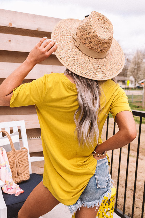 Stay looking chic on the coast with this basic lime punch colored shift tee featuring soft lightweight material, a wide v-cut neckline that can be worn off one shoulder, short loose sleeves, and an ultra relaxed silhouette that falls into a rounded upper-thigh length hemline! Measurements