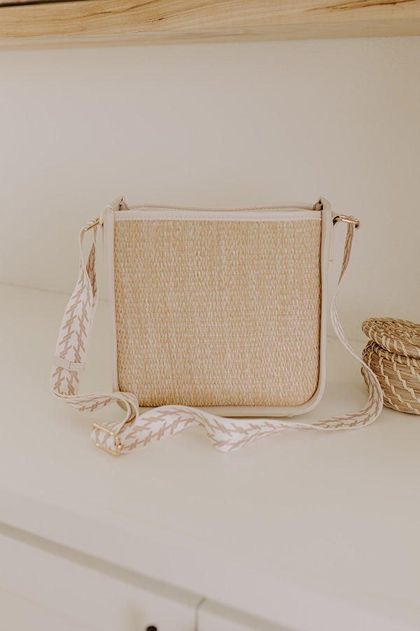 Coastal Cruise Raffia Woven Crossbody in Cream