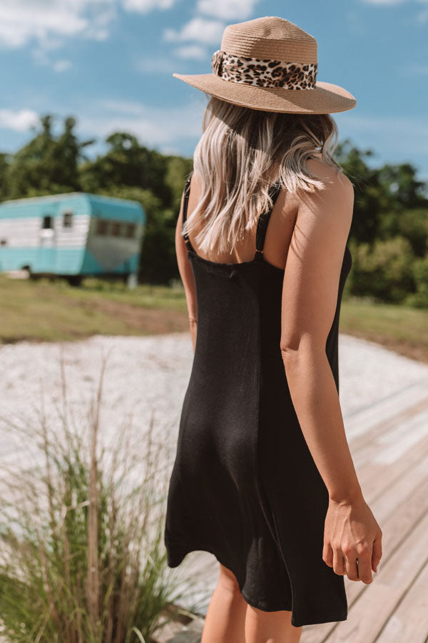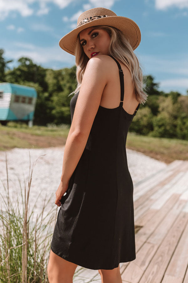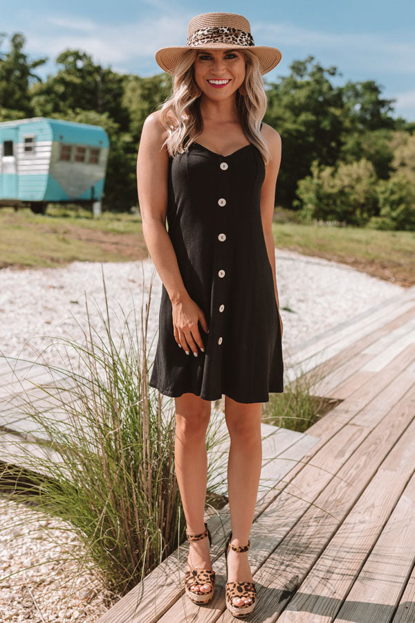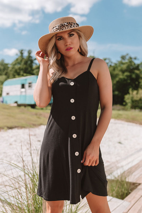 This simple black dress is perfect for when you are rushing out the door to meet your friends! The 1-inch straps and buttons down the front make it an ideal casual summer dress. Throw on a cute pair of sneakers with it and have some fun in the sun!
