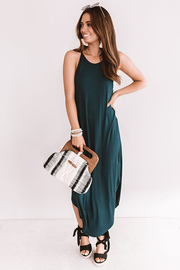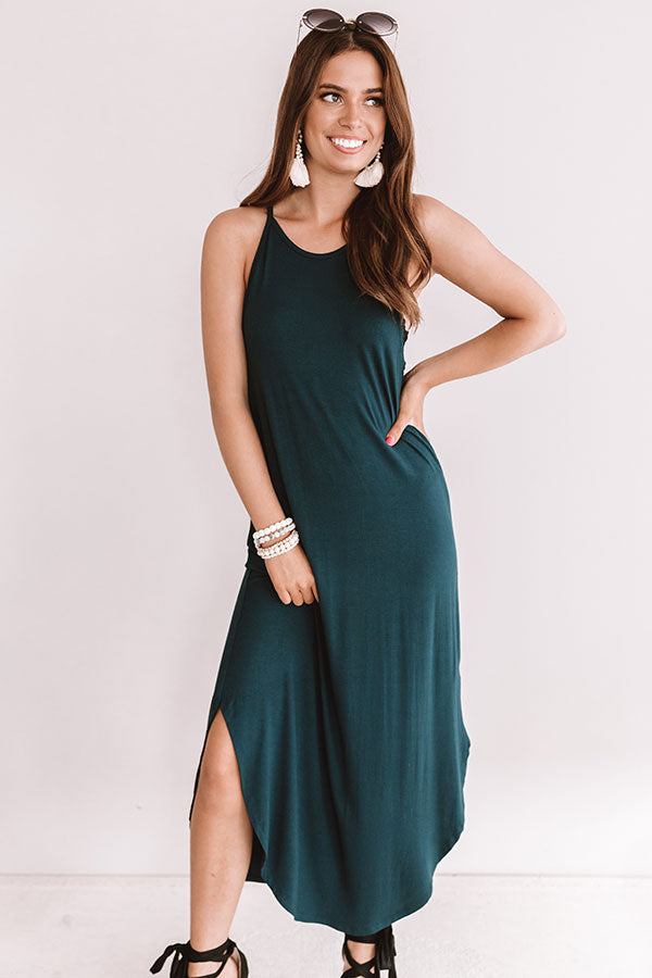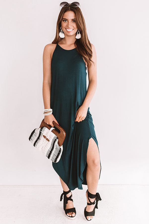 If anyone ever questions if you can combine a t-shirt and a dress, put on this orchid midi and show them how stylish it can be! This lush meadow sweetie is our go-to summer comfort piece with its spaghetti straps, stretchy material, and rounded hemline with knee high slits! You can pair this piece perfectly with black wrap wedges, a woven handbag, statement earrings, and sunnies for a relaxed look that can be worn to all the cocktail parties down the coast! Measurements
