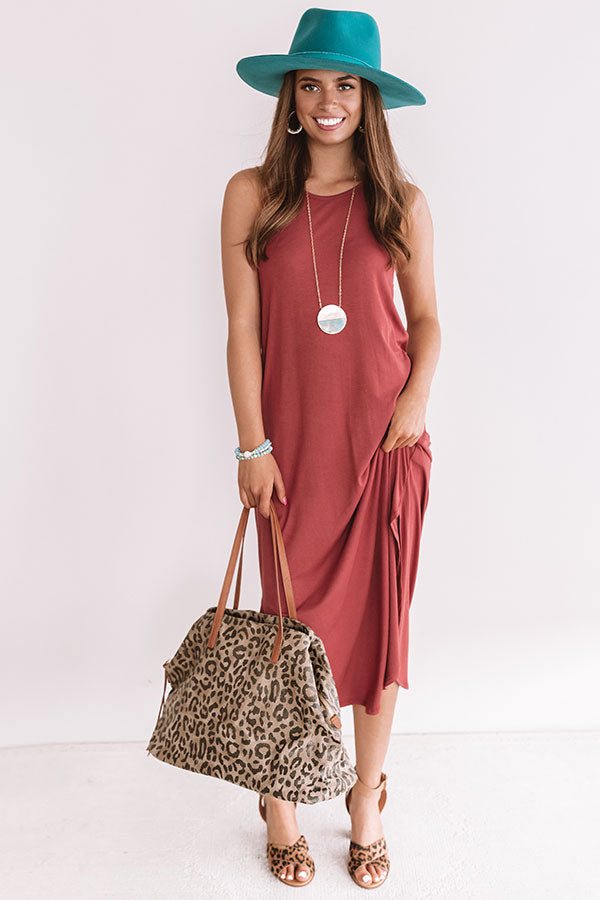 If anyone ever questions if you can combine a t-shirt and a dress, put on this orchid midi and show them how stylish it can be! This rustic rose t-shirt sweetie is our go-to summer comfort piece with its spaghetti straps, stretchy material, and rounded hemline with knee high slits! You can pair this piece perfectly with leopard wedges, an oversized tote, a long necklace, and faux suede hat relaxed look that can be worn to all the cocktail parties down the coast! Measurements