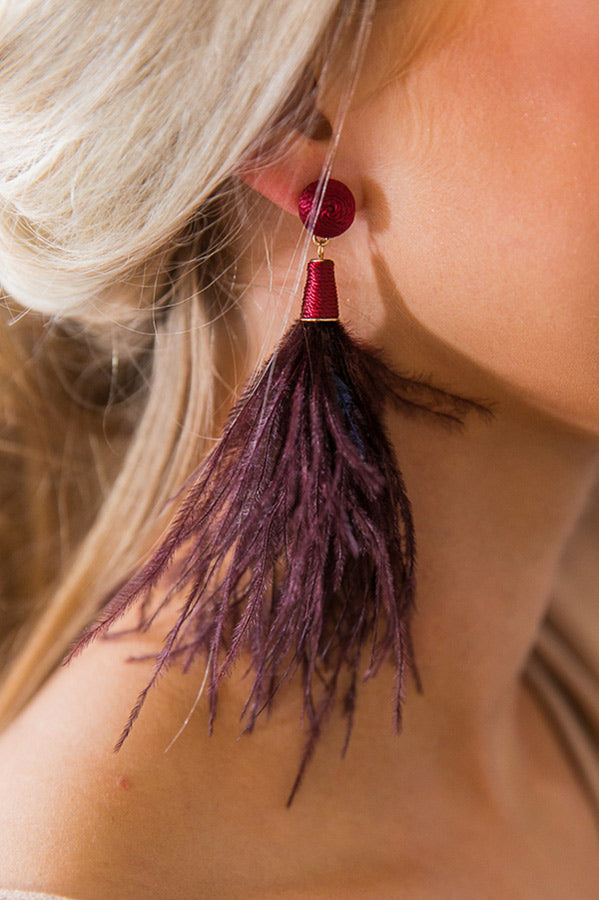 Cocktail Please Feather Earrings In Wine