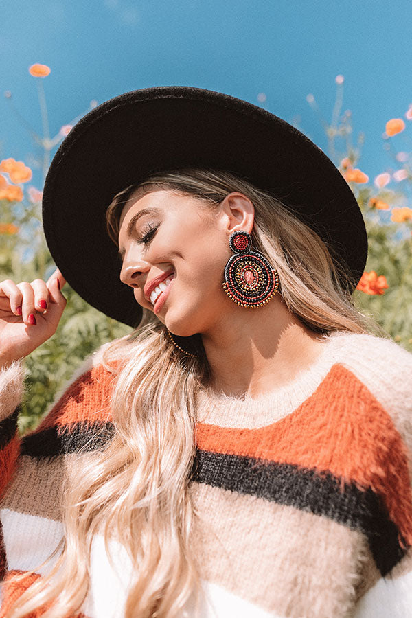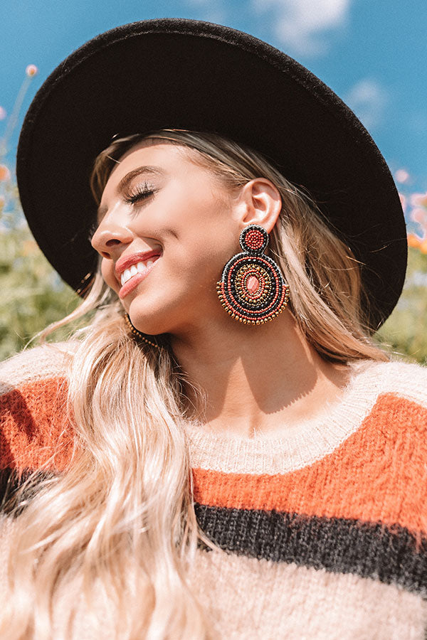Steal the show everywhere you go with the "Cocktails And Cuties" statement earrings featuring two different sized circles with black and coral beaded detailing!