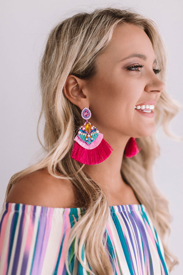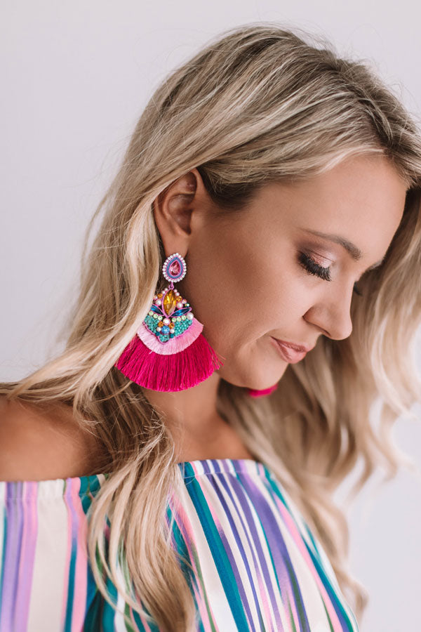 Cocktails On Me Fan Earrings In Hot Pink