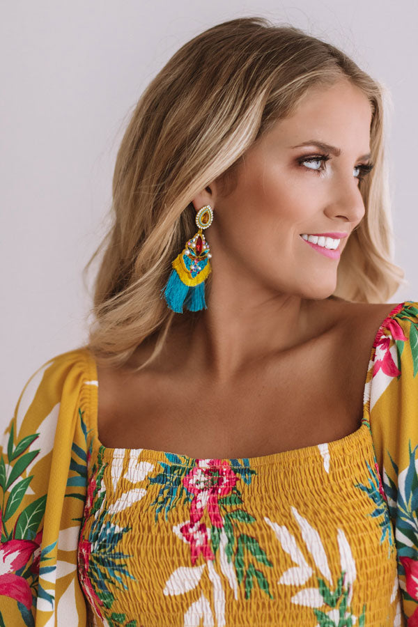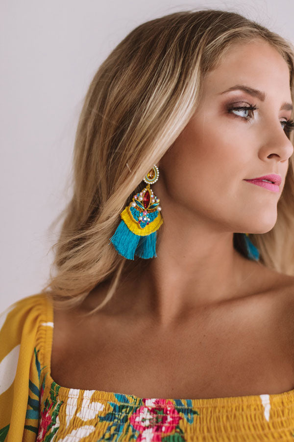 Cocktails On Me Fan Earrings In Ocean Blue
