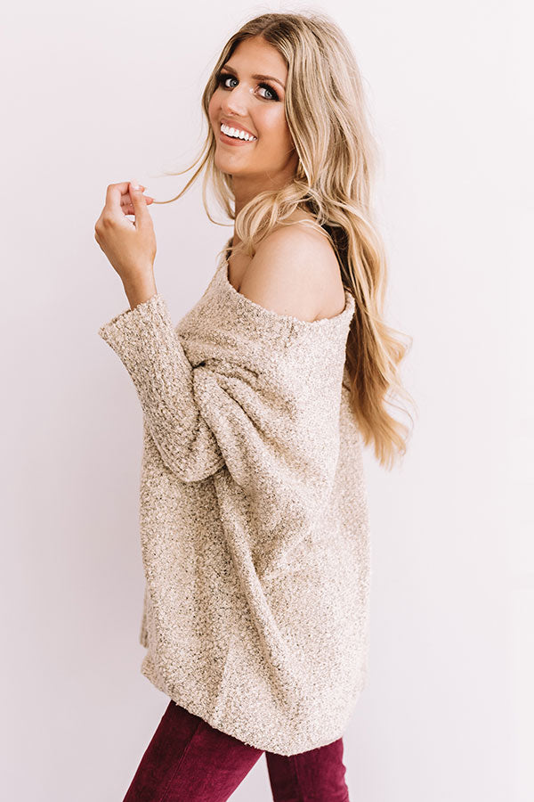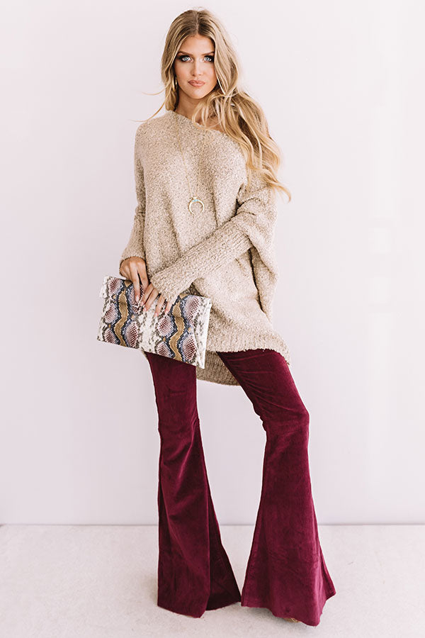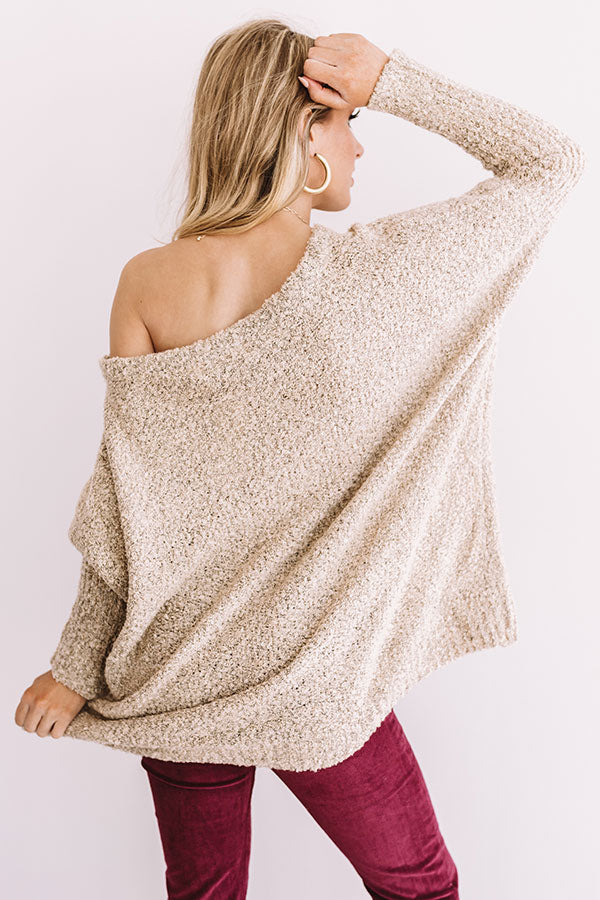 When it is time to drink "cocoa and chill," stay stylish an warm with this birch shift sweater featuring an ultra soft loose knit material, a wide rounded neckline that can be worn off one shoulder, long sleeves with fitted ribbed forearms, and a relaxed bodice that falls into a straight hemline! We have styled this neutral piece with some colored flares, statement jewelry, and a snake print clutch, but you can also wear it with some distressed ankle skinnies, "The Jess Faux Suede Heel in Natural," and our "Sweet As Sugar Hat in Ivory!" Measurements