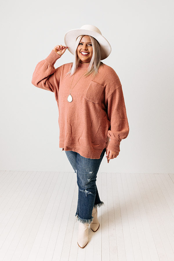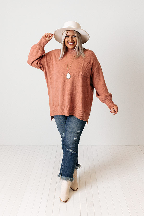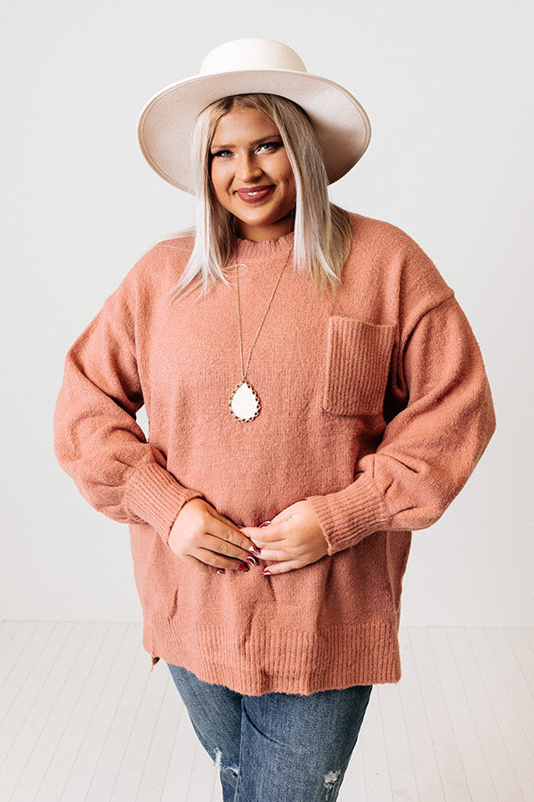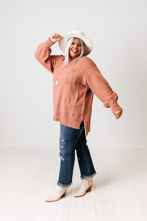 Who else is in the 'Cocoa Mood' this time of year? Yes, please! This darling plus size blush colored shift sweater features an oversized fit, balloon sleeves that gather at the wrist, a ribbed mock-turtleneck, a sew on front pocket, and a split high-low hem for extra coverage. What more could you want? Measurements