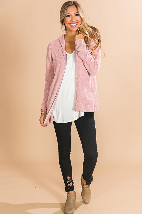 Rise and shine and smell the coffee in this cozy cardi! This softest ever fabric is so dreamy, you'll want to wear it any chance you get! It's one of those, "I want to wear a sweatshirt, but still look chic" kind of zip up hoodie! Need we say more? Slip your hands into the primped pockets for extra warmth!