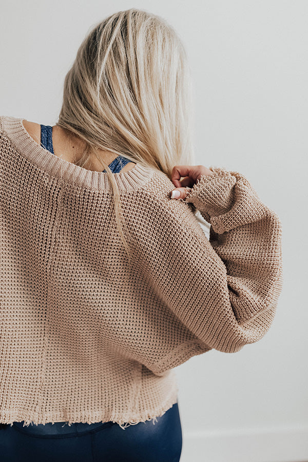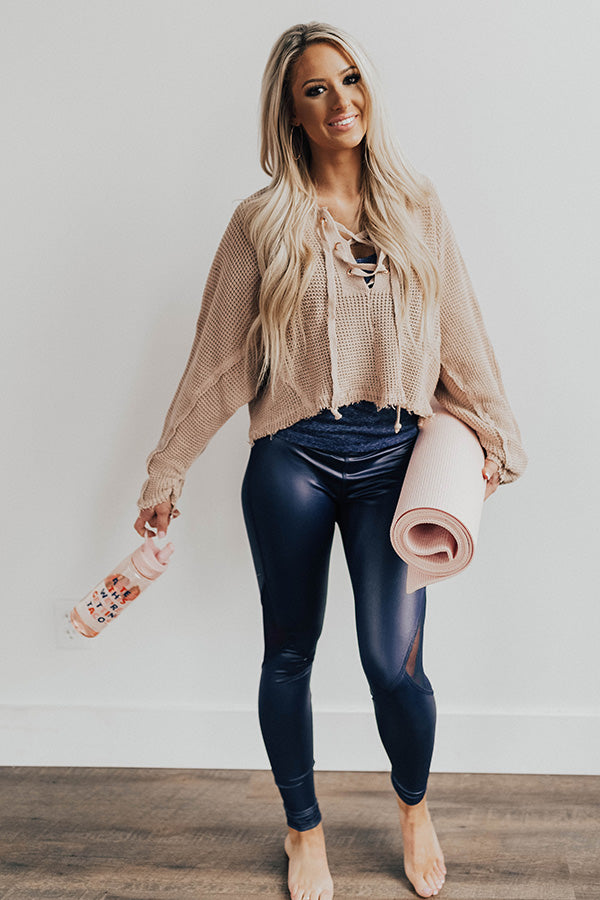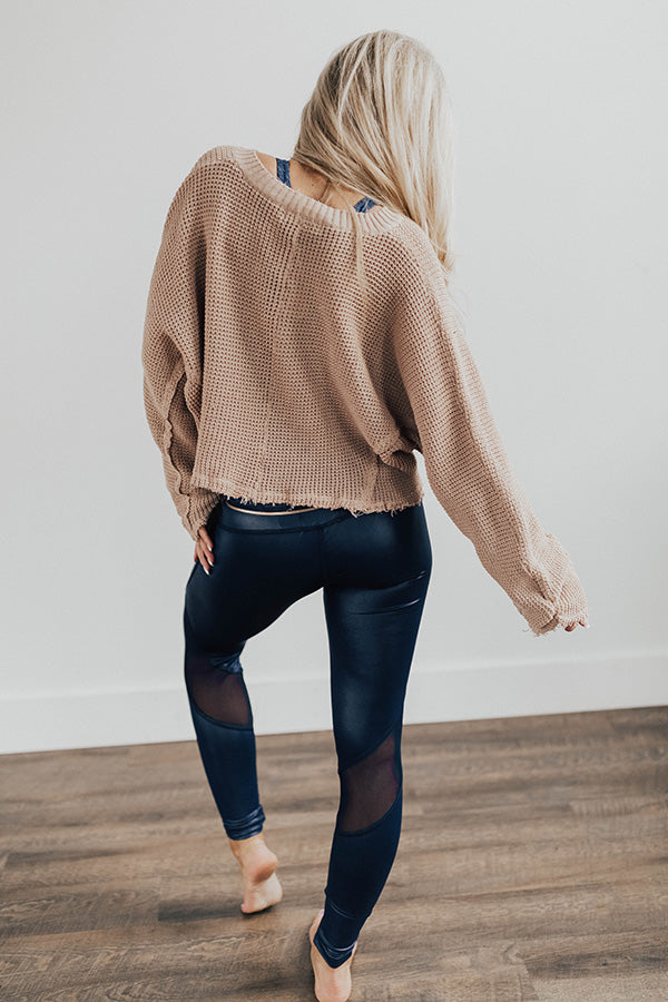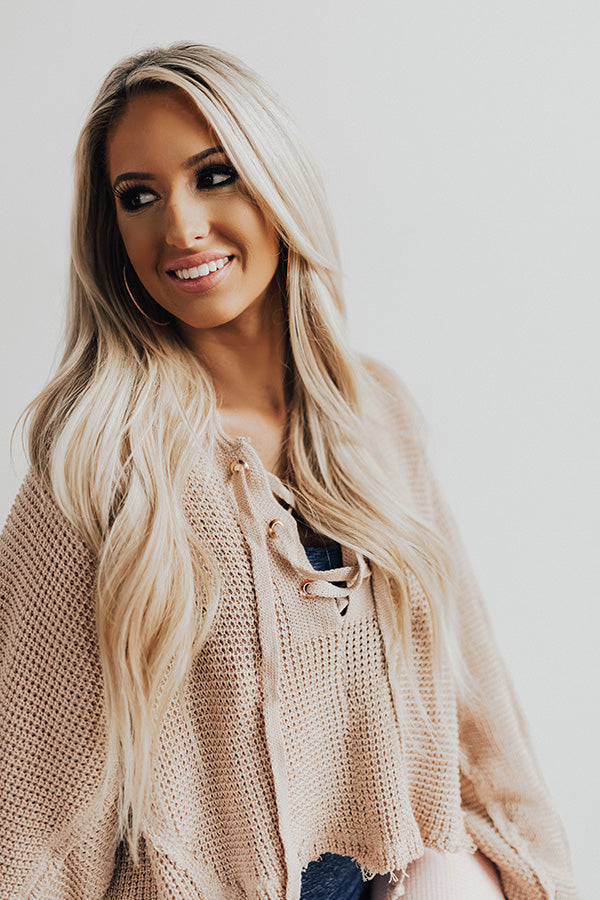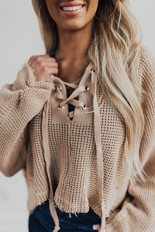 Stand out from the crowd in this frayed crop lace up sweater. The "Coffee Casual Lace Up Crop Sweater" features edgy frayed details, a raw hemline, and a lace up v-neck with rose gold accents! This lace up crop sweater offers a comfortable fit without compromising style.