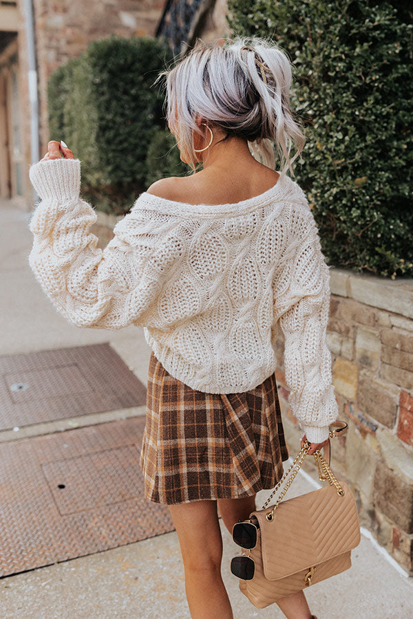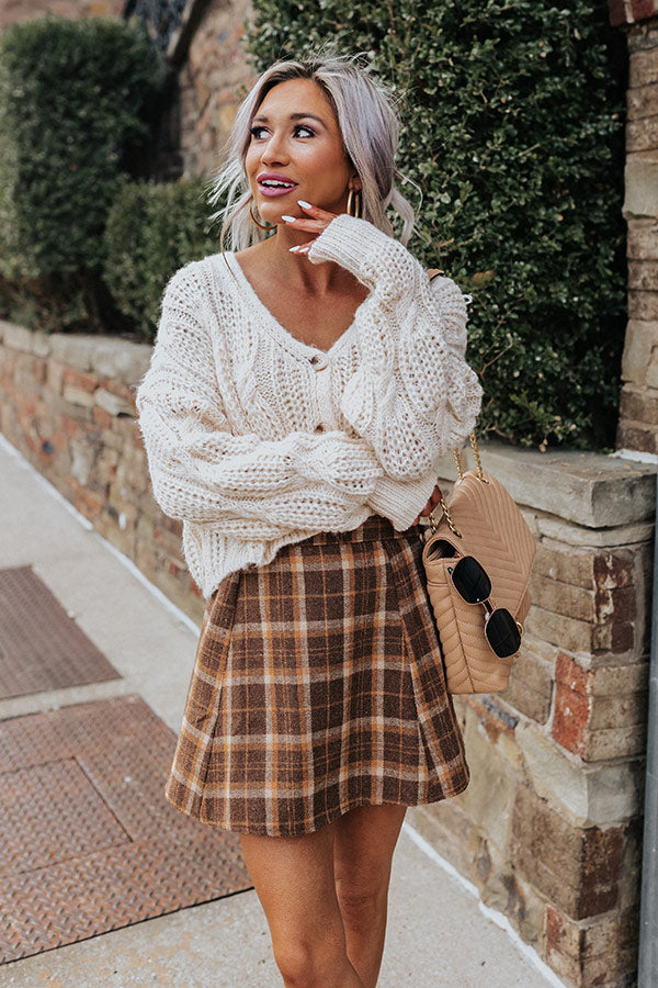 Perfect for wearing solo or layered over your fave bralette, our charming cream colored 'Cable Habit' cardigan featuring soft and thick cable knit material, a three button down front with a v-cut neckline, long loose sleeves, and a slouched silhouette that falls into a straight hemline!