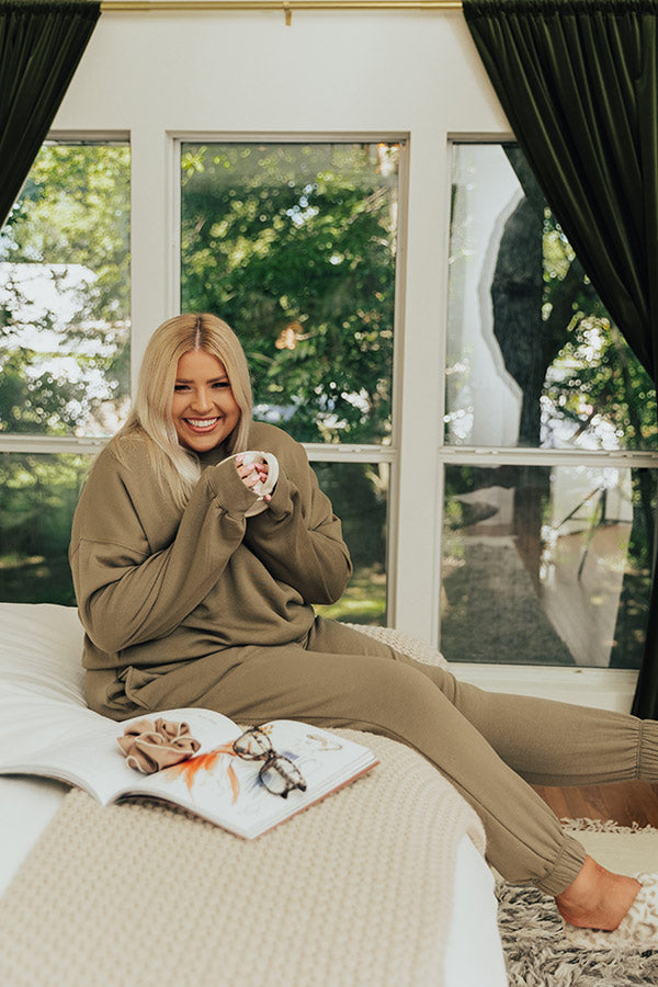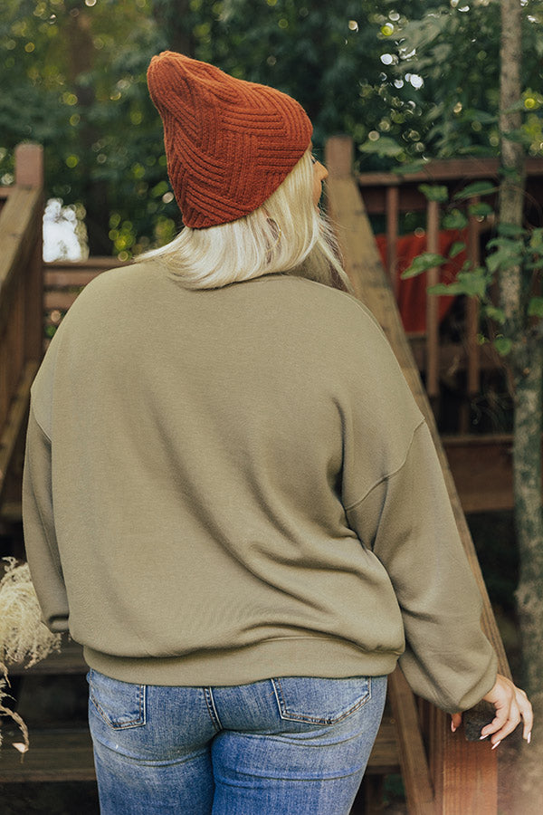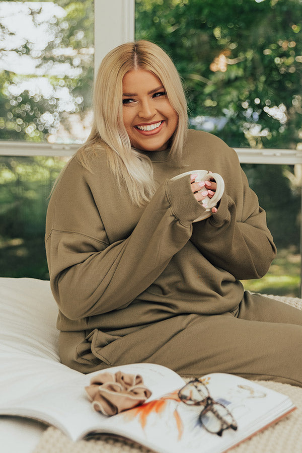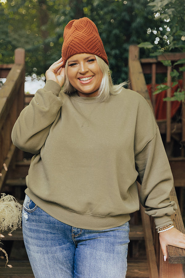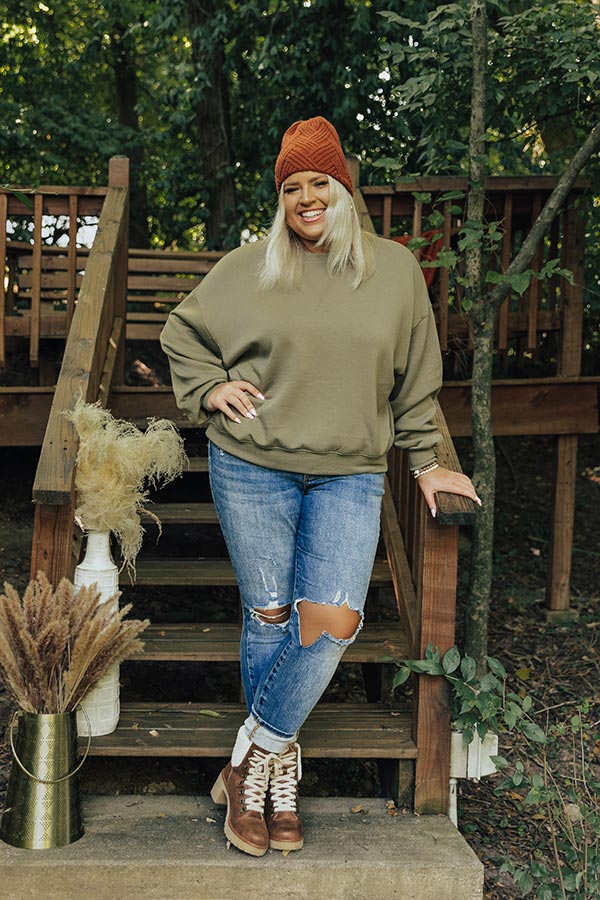 Stay cozy all season long in our comfy plus size sage colored 'Coffee Order Sweatshirt' featuring soft lightweight material, a rounded neckline, long loose sleeves with fitted cuffs, and a slouched silhouette that ends in a straight hemline! Measurements