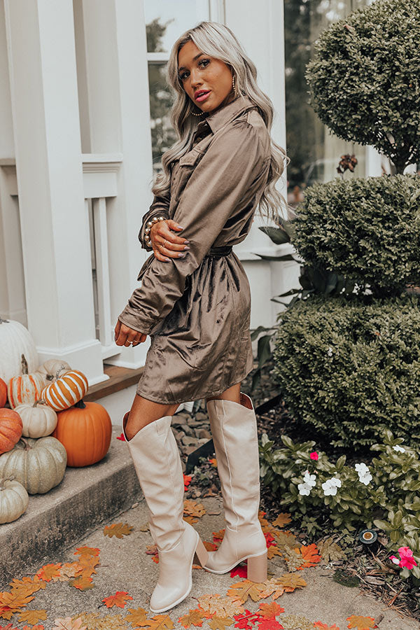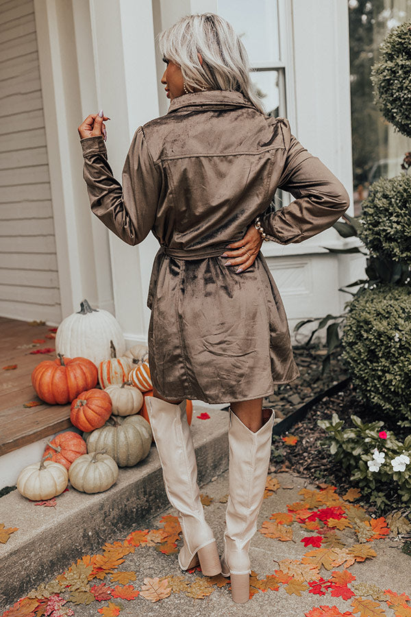 Coffee Shop Meetup Faux Suede Dress In Dark Martini Olive