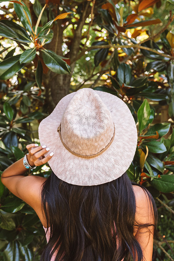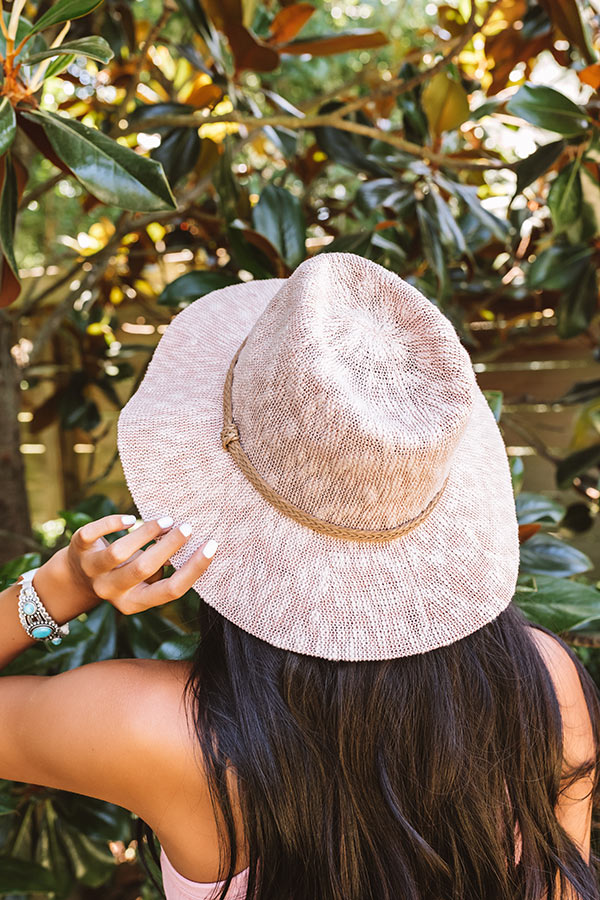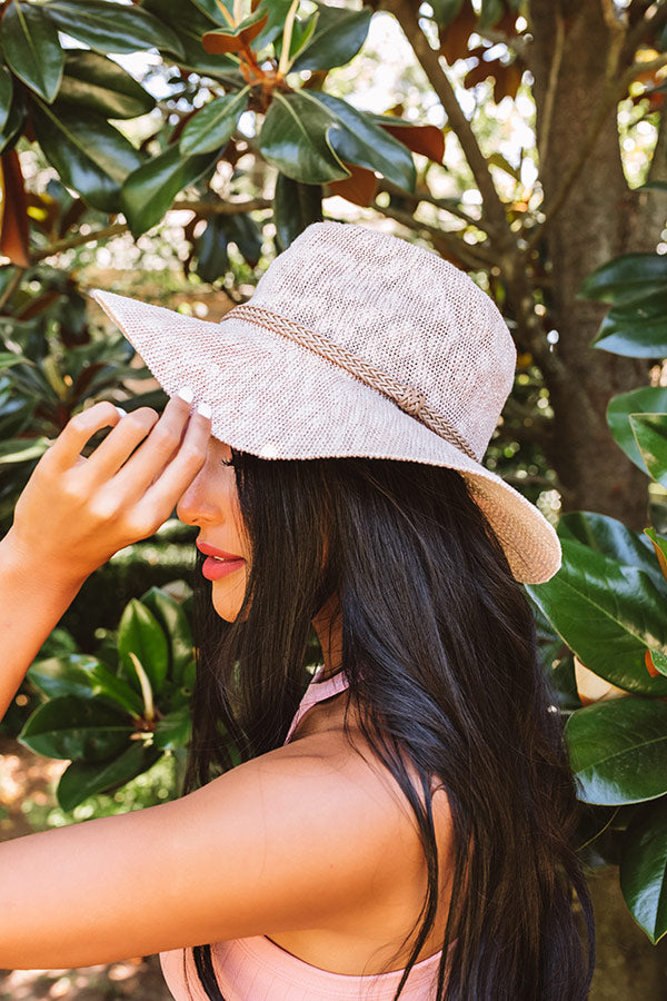 Stay cool this summer in our adorable blush hued "Cold Brew Kisses Hat" featuring lightweight woven material, wide floppy brim, and a braided accent band!