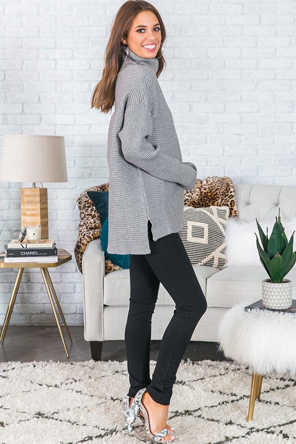 Chilly nights call for cozy sweaters! The "Cold Night Kisses Tunic Sweater" has a turtle-neckline, long fitted sleeves & a relaxed ribbed knit bodice with a split-sided tunic length hem. Dress this sweater up with heels, or down with booties, to create a variety of stylish looks that you will have on repeat week after week & season after season.