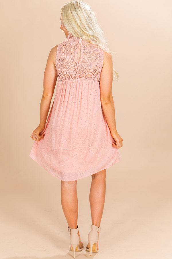 Stay sweet + sassy in this cute shift dress! This sleeveless sweetie has a tasteful high cut neckline, gorgeous crochet accented sleeves, back & center bodice and a breezy textured rayon silhouette that you are sure to love. Dress your look up with a nude strappy heel, or down with wedges for brunch with your besties!