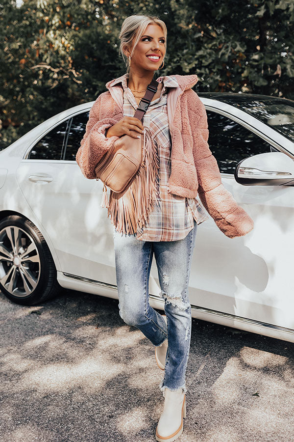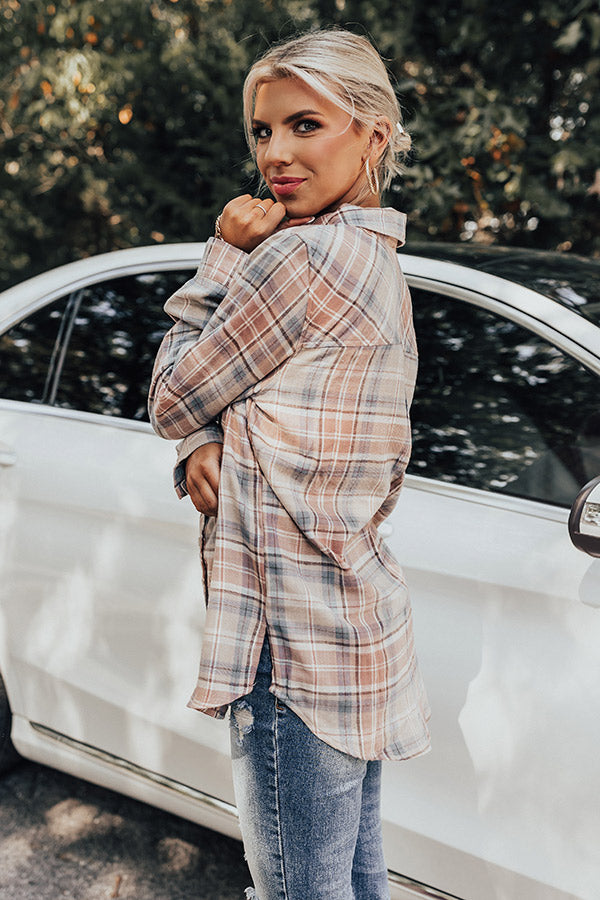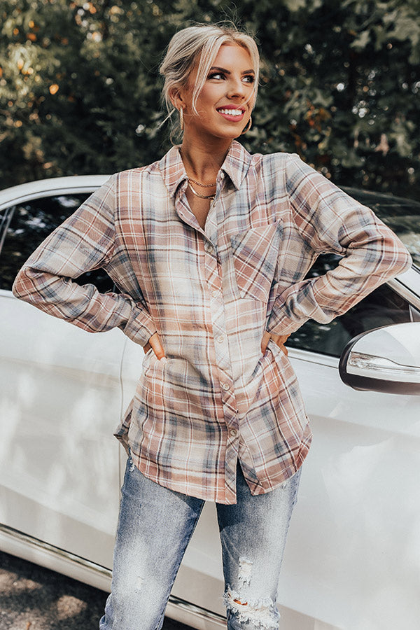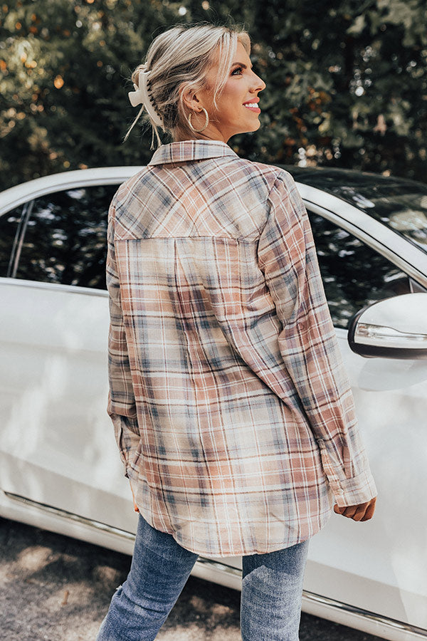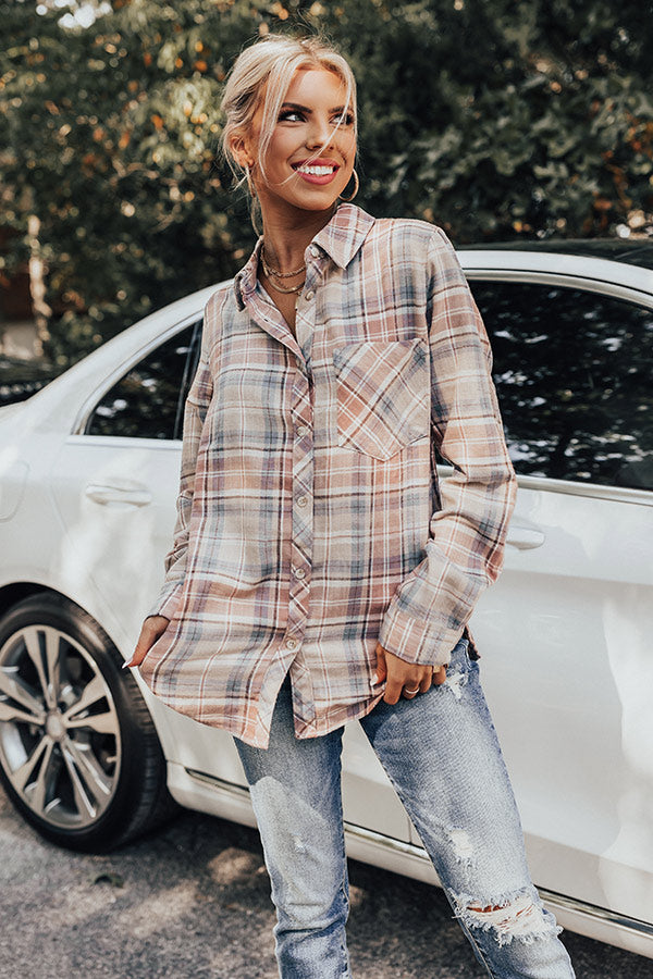 Embrace fall with this darling 'Come Pick Me Up' flannel in airy blue! Features a lightweight material, button-down collared neckline, long sleeves with button closure cuffs, a single patch pocket, a subtle high-low cut, and a feminine silhouette that falls into a round hemline.