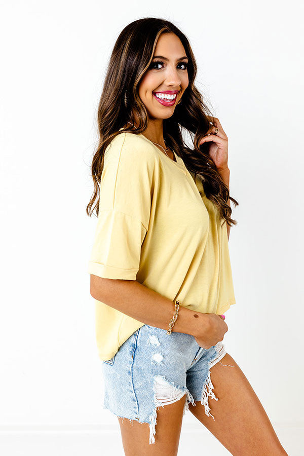 When comfort is calling, there is no better piece to put on than this yellow casual cute shift tee featuring soft lightweight material, a v-cut neckline, loose short sleeves, and a relaxed silhouette that ends in a straight hemline! on products