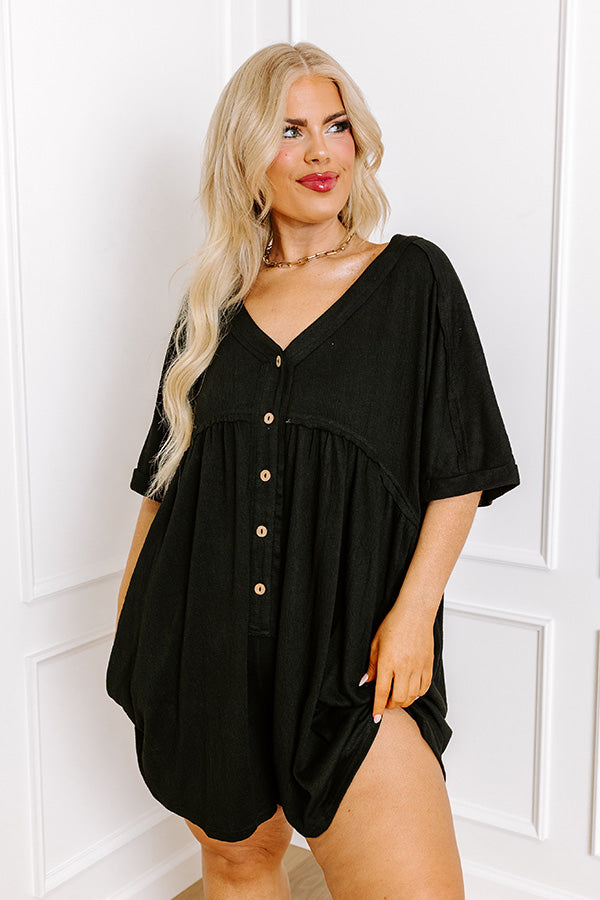 - Keep all eyes on your effortless style with this adorable romper! Short rolled sleeves and buttoned bodice is the epitome of summer charm. Whether you're strolling along the beach boardwalk or enjoying a rooftop brunch with friends, this versatile piece exudes casual elegance. Its playful silhouette offers a perfect balance between comfort and style, making it a must-have addition to your warm-weather wardrobe. Embrace the carefree spirit of the season in this irresistible ensemble