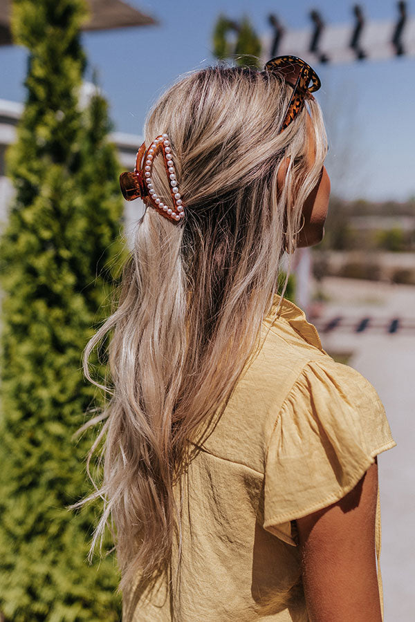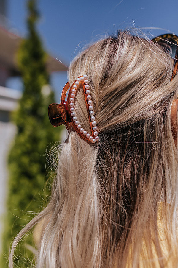 We have no doubt you will be completely in love with this adorable maple hued hair claw featuring a half circle silhouette with pearl accents!