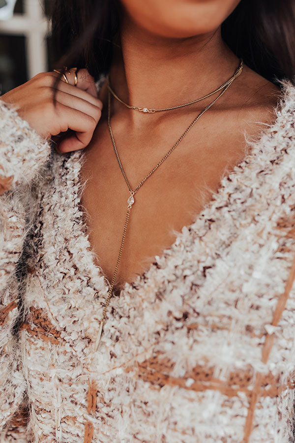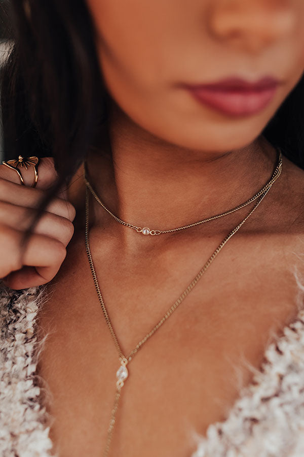 We have no doubt you will be "constantly inspired" by the beauty of this dainty vintage gold necklace featuring a choker with a tiny clear gemstone accent and a longer Y chain with an elongated pendant!
