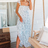 Stay cool all summer long in this charming white maxi dress featuring lightweight material patterned with a blue floral print, a smocked bodice with a square neckline and upper back, ruffled cap sleeves, and a relaxed skirt silhouette that falls into a straight ankle-length hemline!