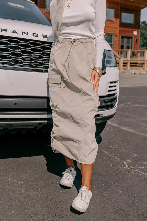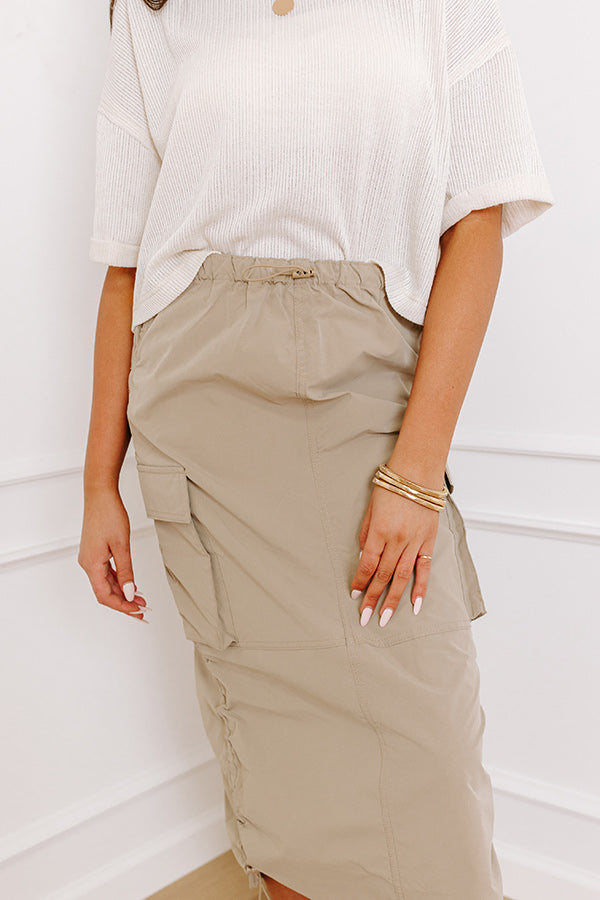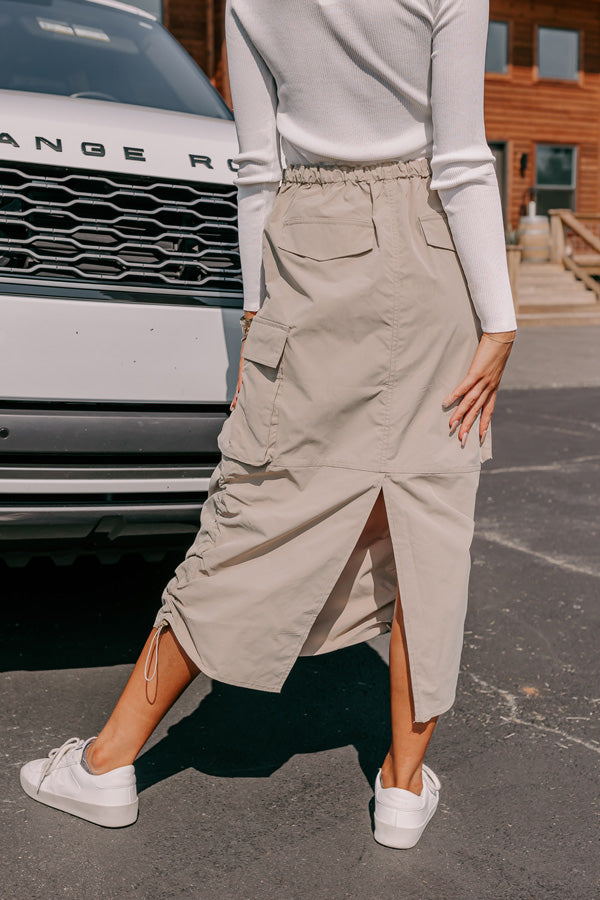 Cool Energy Cargo Midi Skirt in Warm Taupe