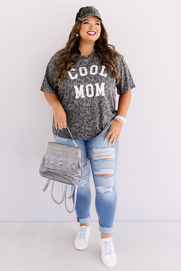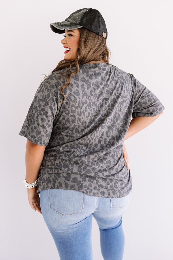 Plus Size - You will undoubtedly be a "cool mom" when you wear this fierce charcoal colored shift top featuring soft lightweight material patterned with a brown leopard print, a scooped neckline, short loose sleeves, cute white block lettering on the front, and a relaxed silhouette that falls into a straight hemline! We have styled this cutie with some distressed light wash skinnies, trendy white sneakers, a chic backpack, and a matching baseball cap, but you can also wear it with some frayed white shorts and "The Allen Wedge in Black!"