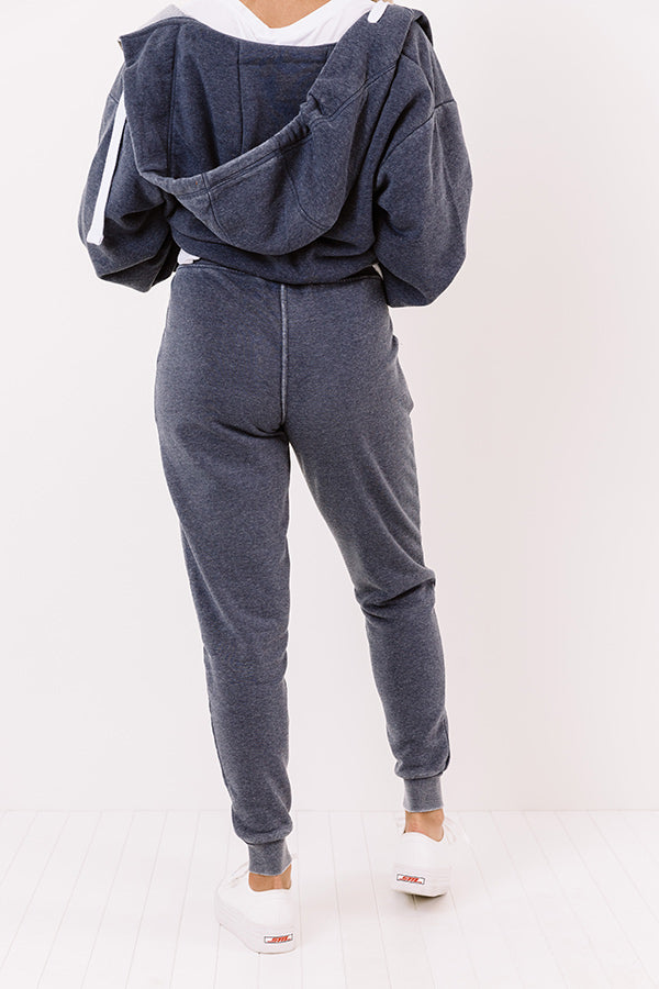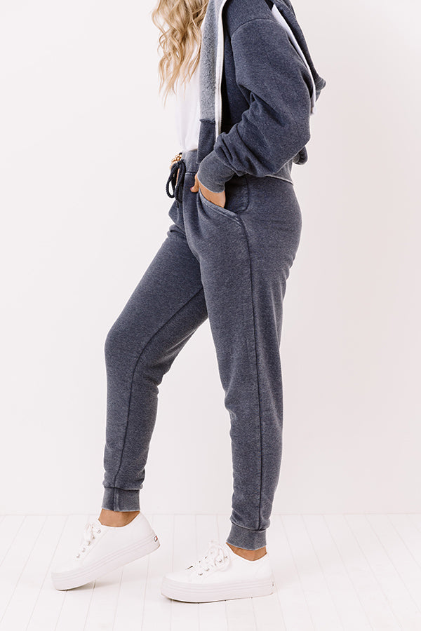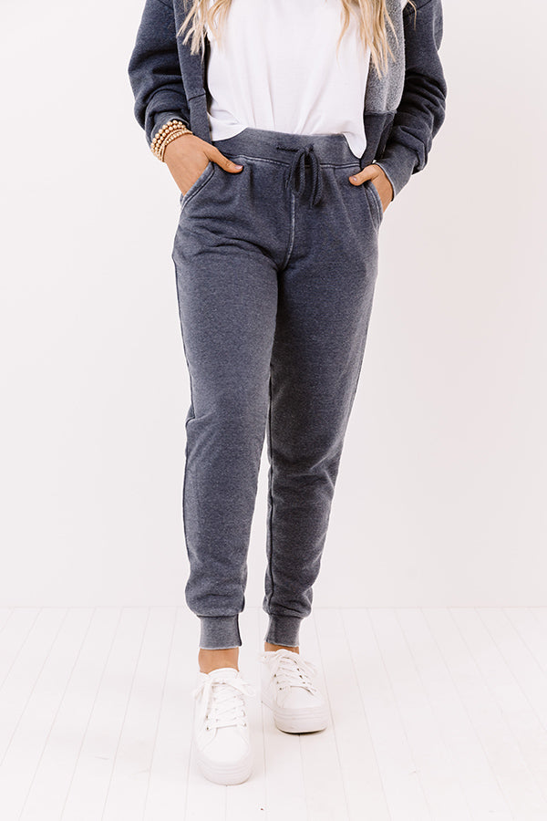 Take on those cool winter mornings in style with these trendy navy colored joggers featuring soft lightweight material, a wide elastic waistline with a tie closure, accent side pockets, and a slouched pants silhouette that falls into fitted ankle-length hemlines! Style with our 'Cool Morning Sweater in Navy' for the ultimate two-piece set! Measurements