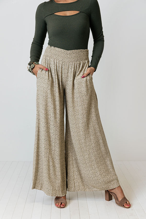 Want to be comfy and cute at the same time?! Look no further than our adorable 'Cool To Be Kind Pants' featuring lightweight breezy material patterned with a small green hued print, a wide elastic waistline, accent side pockets, and an ultra relaxed silhouette that falls into ankle-length bell bottom hemlines!