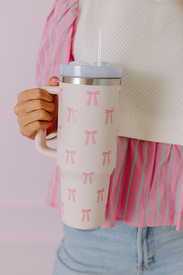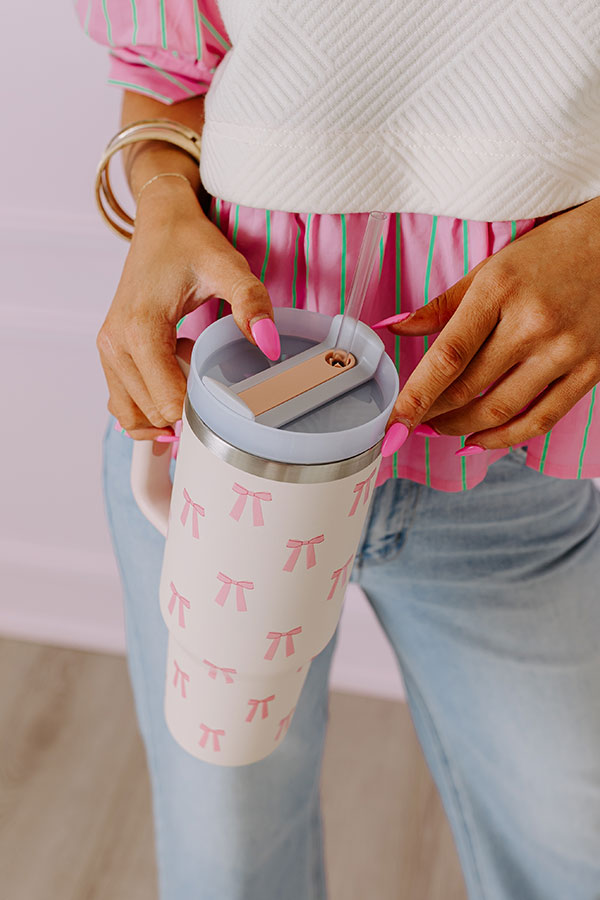 - Features a handle, a reusable straw, and a twist on slide and sip lid