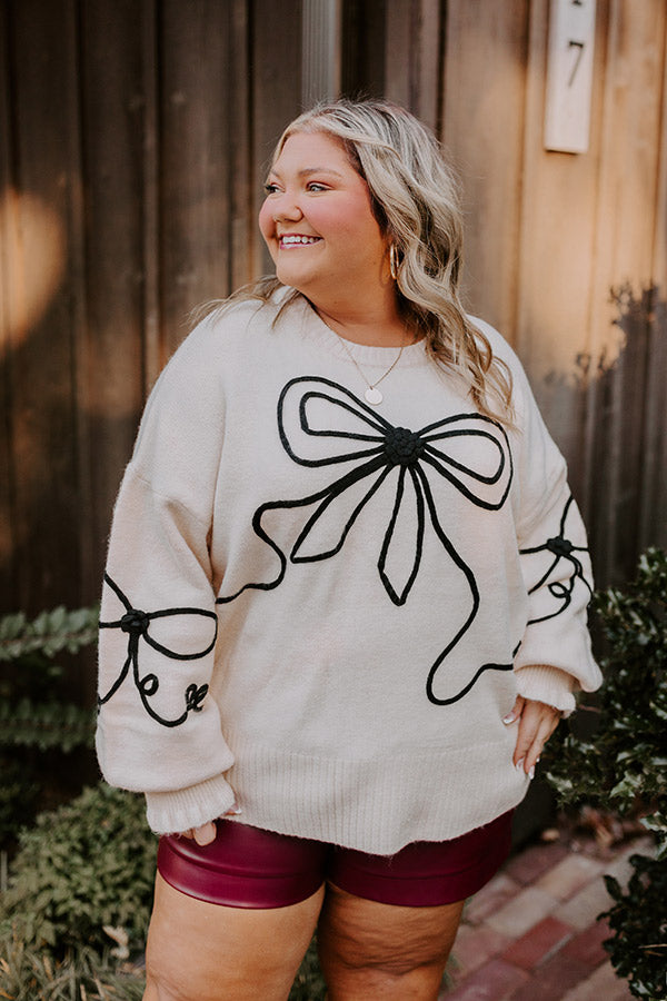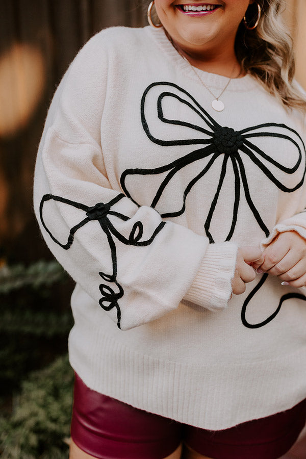 - Super chic and oh-so-sweet, this darling sweater is sure to steal your heart! The stylish bows add a sweet, playful touch, perfect for a casual-chic vibe. You'll feel fabulous and cozy every time you slip it on!