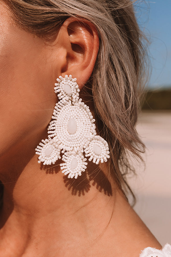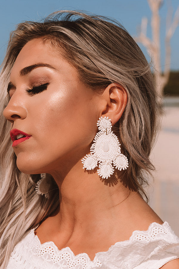 You are sure to stand out in a crowd when you accessorize with our adorable "Coral Reef" statement earrings featuring large circular shapes covered in white beads!