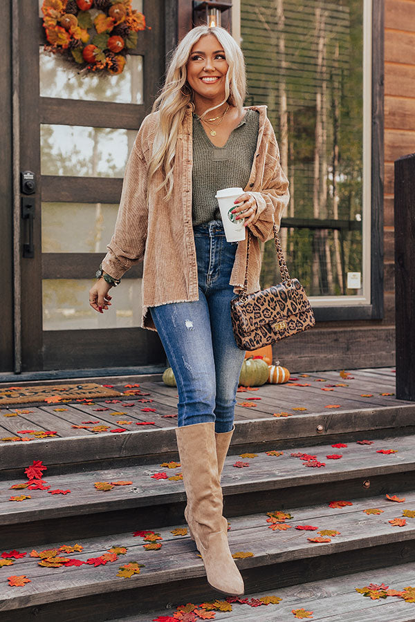 Corduroy Cutie Button Up Top In Khaki
