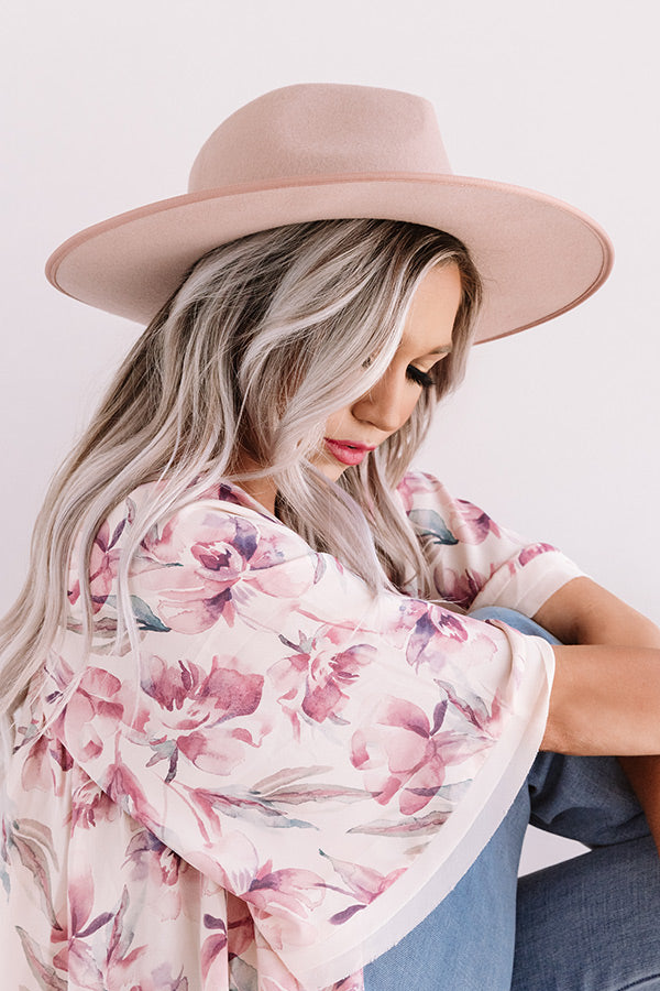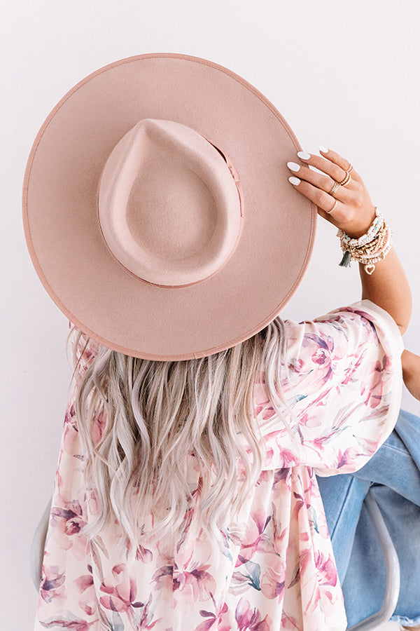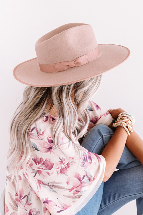Top off your OOTD in the most stylish way with our blush hued "Corner Cafe" hat featuring lightweight wool material, a wide stiff brim, and a cute accent band!