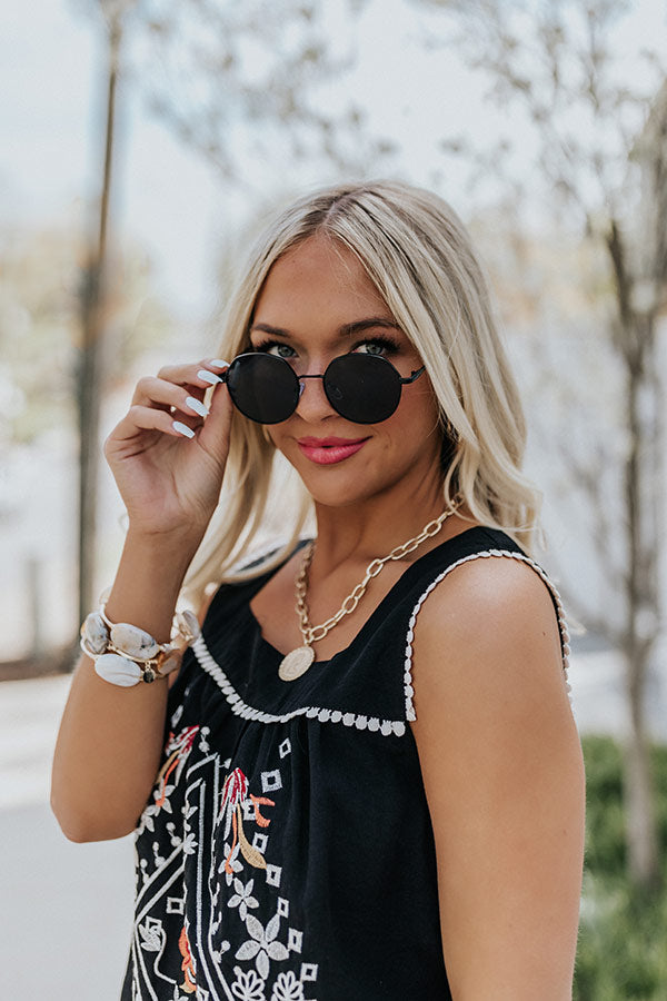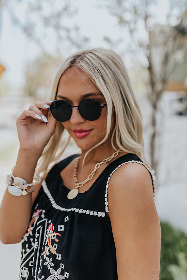 You are sure to look like a total babe when you accessorize with these trendy sunnies featuring rounded black frames and dark tinted lenses!