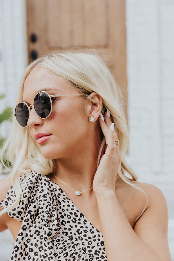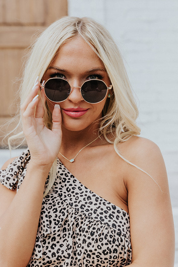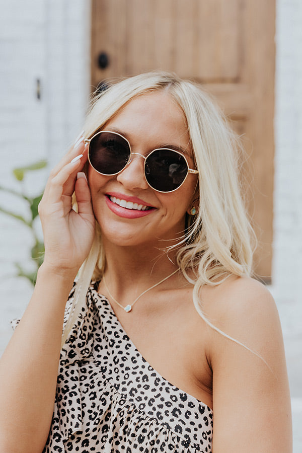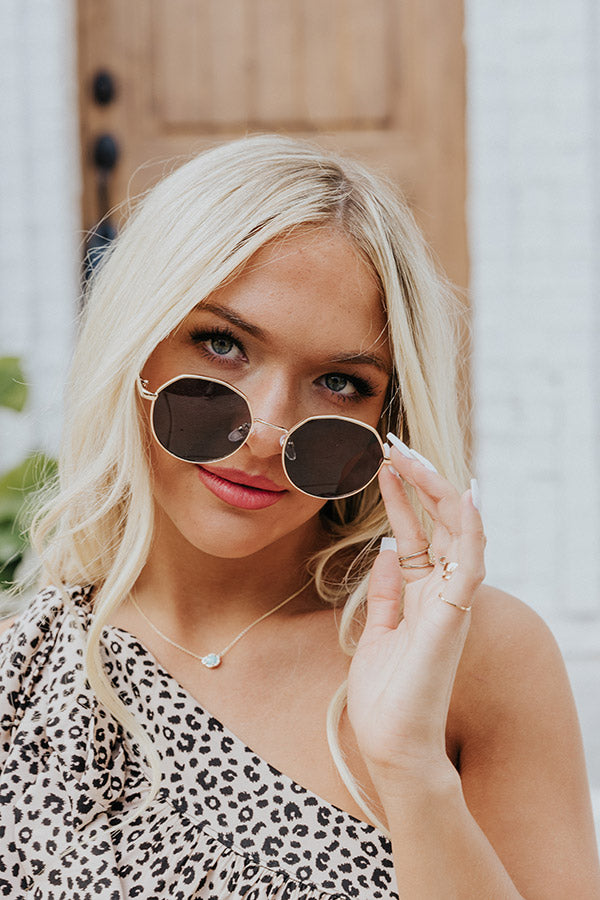You are sure to look like a total babe when you accessorize with these trendy sunnies featuring rounded gold frames and black tinted lenses!