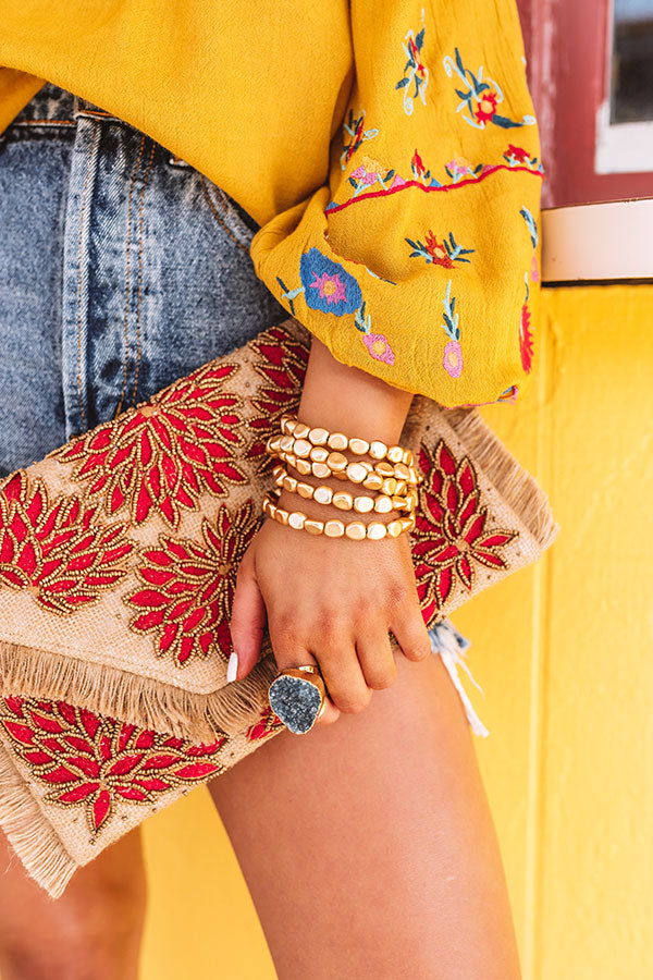 Add some extra glitz to your OOTD with our adorable "Costa Kisses Bracelet Set" featuring five pieced adorned with metallic gold oblong beads!