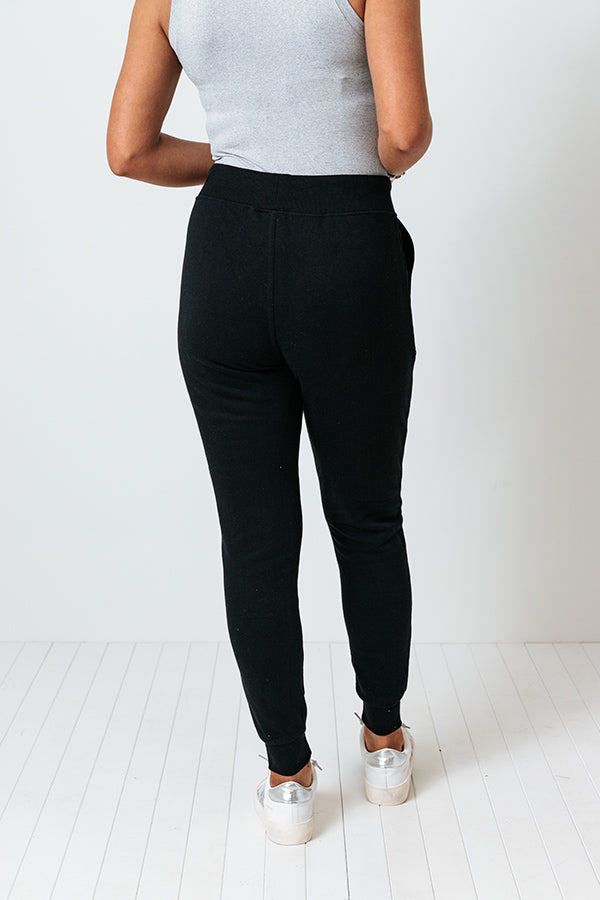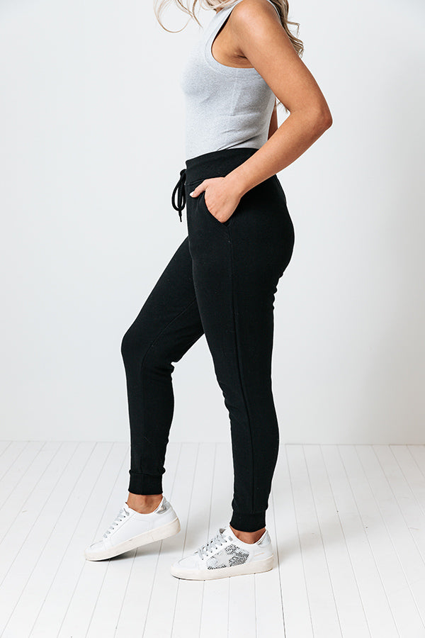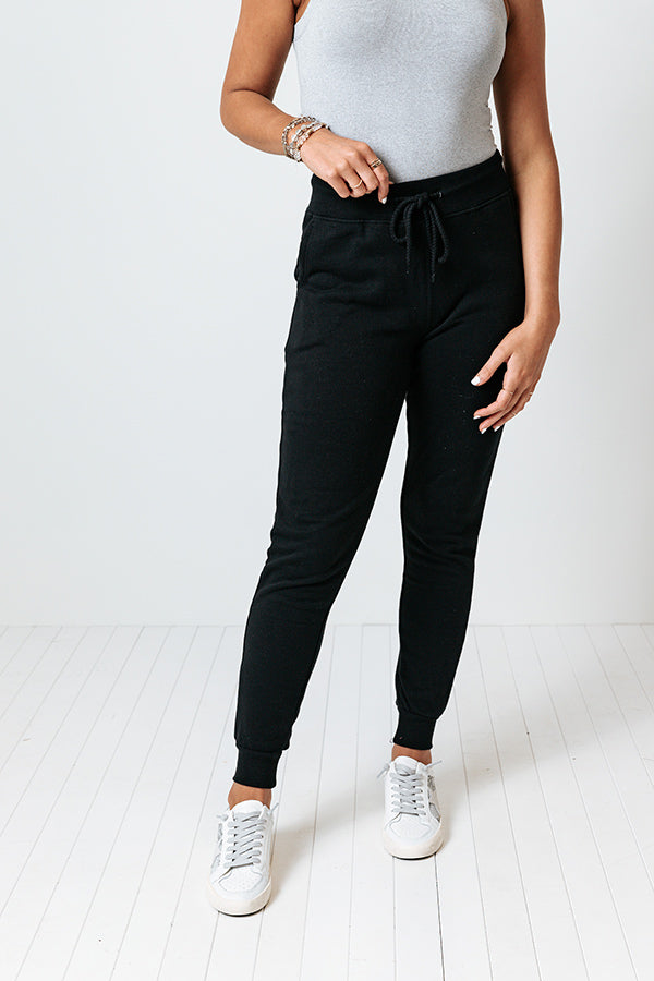 You can count on these adorable black joggers being comfy with its soft lightweight material, wide elastic waistline with a tie belt, accent side pockets, and a slouched pants silhouette that tapers into fitted ankle-length hemlines!