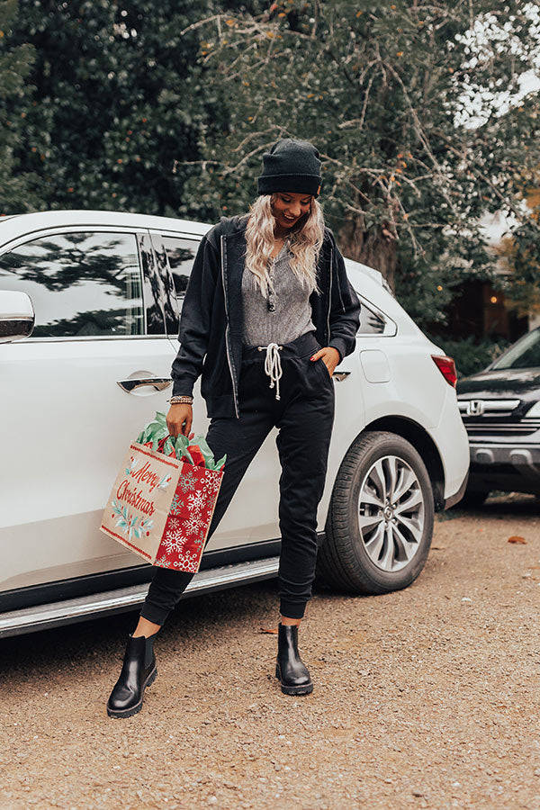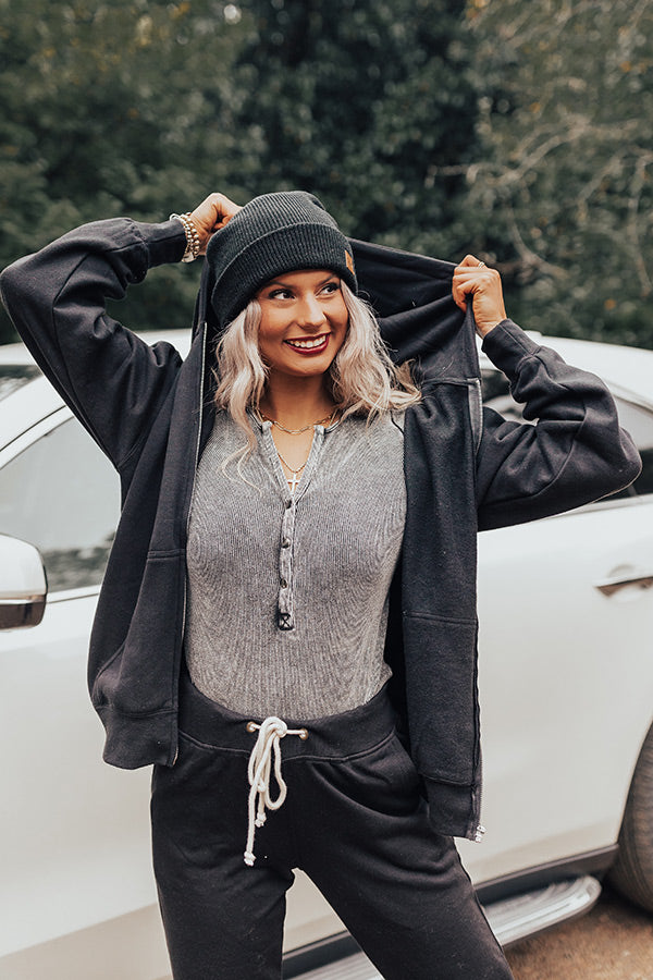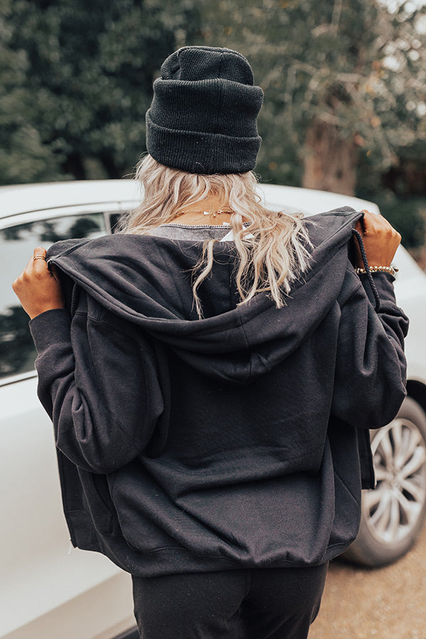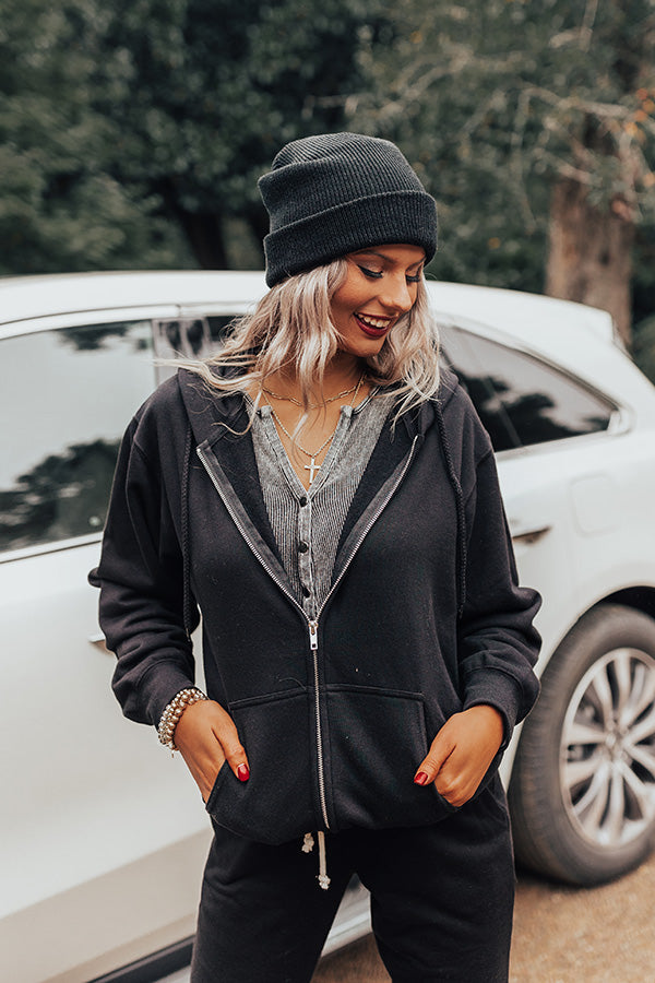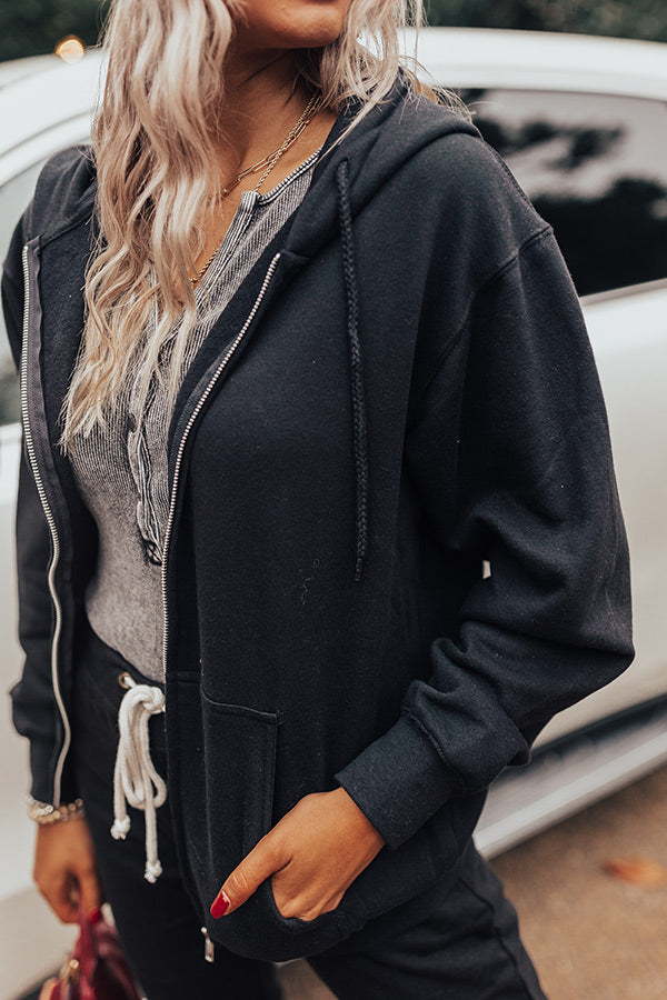 You can count on this adorable black sweater being comfy with its soft lightweight material, a zip closure front with a drawstring hooded back, long loose sleeves with fitted cuffs, accent side pockets, and a slouched silhouette that ends in a straight hemline! Measurements