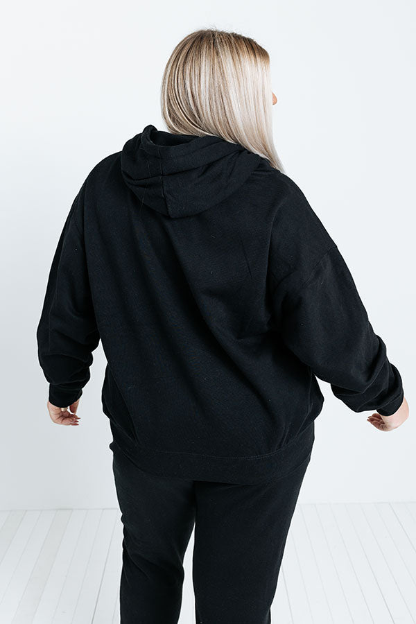 You can count on this adorable plus size black sweater being comfy with its soft lightweight material, a zip closure front with a drawstring hooded back, long loose sleeves with fitted cuffs, accent side pockets, and a slouched silhouette that ends in a straight hemline! Measurements