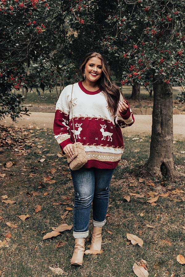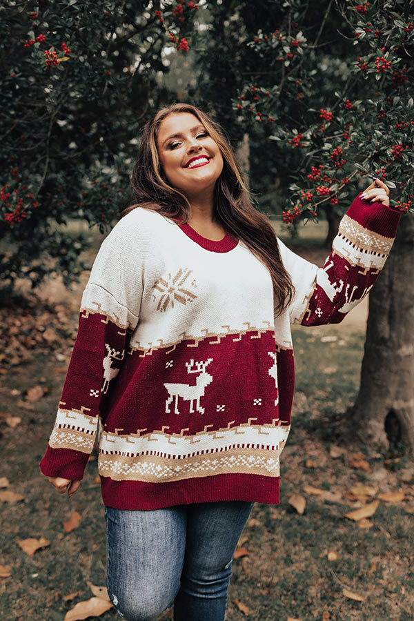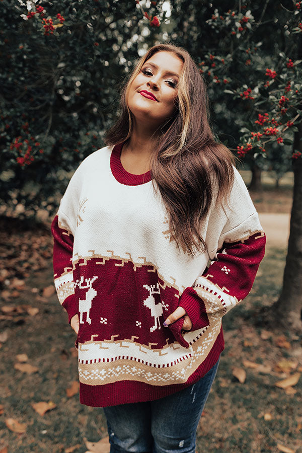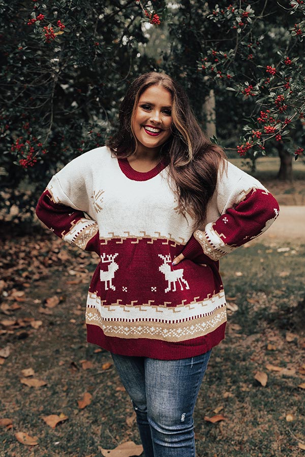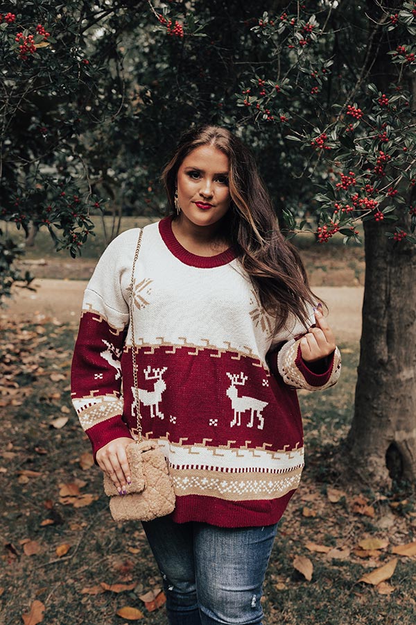 Count down the days to Christmas looking fabulous in this cute plus size sweater featuring soft and warm knit material patterned with white reindeer and neutral snowflakes, a rounded neckline, long loose sleeves, and a slouched silhouette that falls into a straight hemline! Measurements