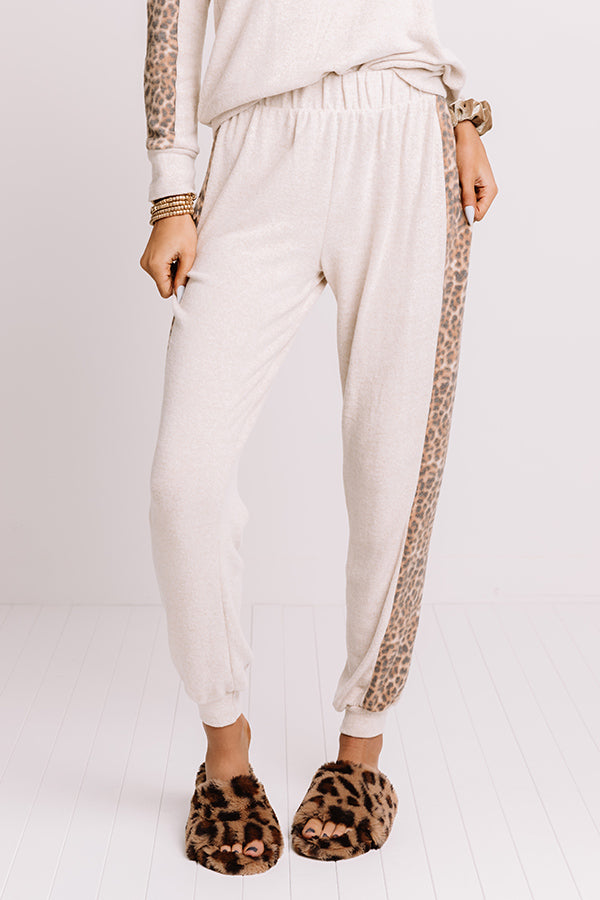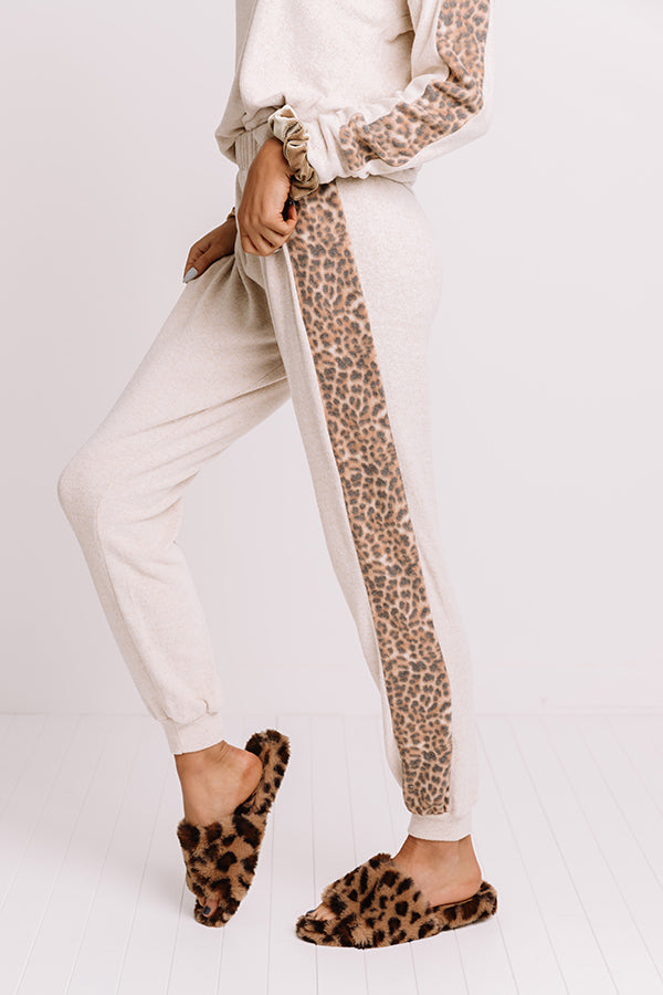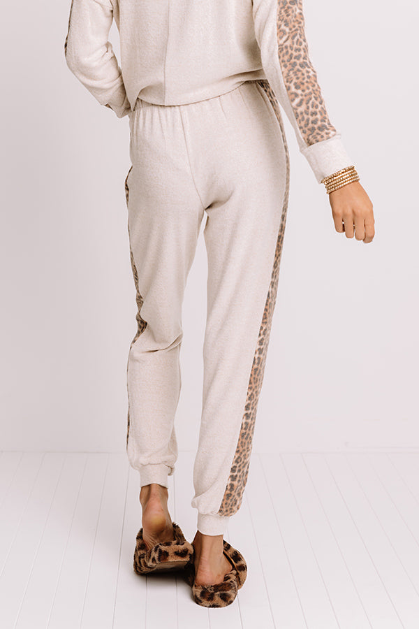 You won't find a cozier piece here than these neutral joggers featuring ultra soft lightweight material with a leopard accent stripe down the sides, a wide elastic waistline with a tie belt, and a relaxed pants silhouette that falls into fitted ankle-length hemlines! Measurements