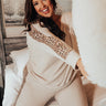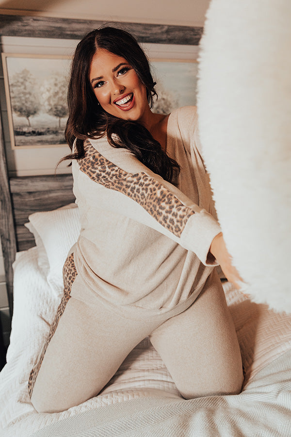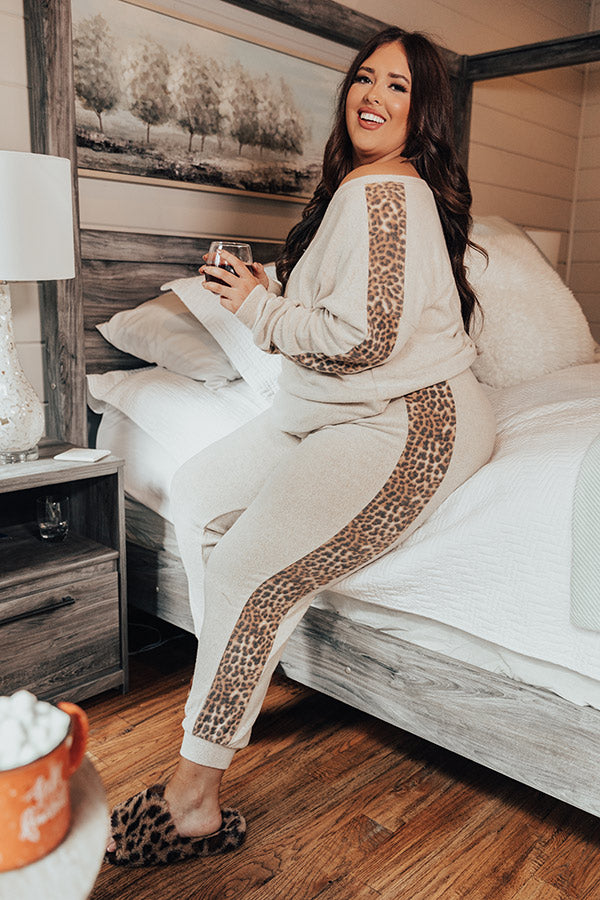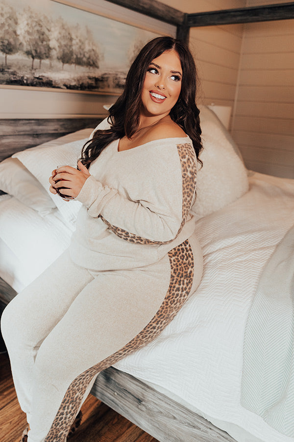 Plus Size - You won't find a cozier piece here than this neutral sweatshirt featuring ultra soft lightweight material, long loose sleeves with fitted cuffs and a wide leopard accent stripe down the sides, a v-cut neckline, and a relaxed silhouette that falls into a straight hemline! Measurements