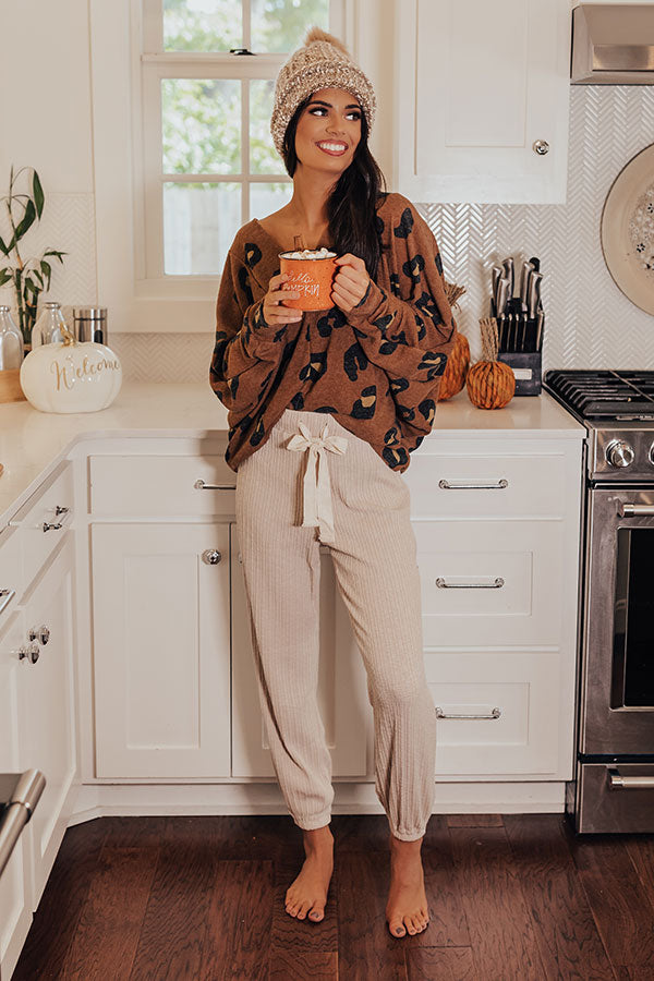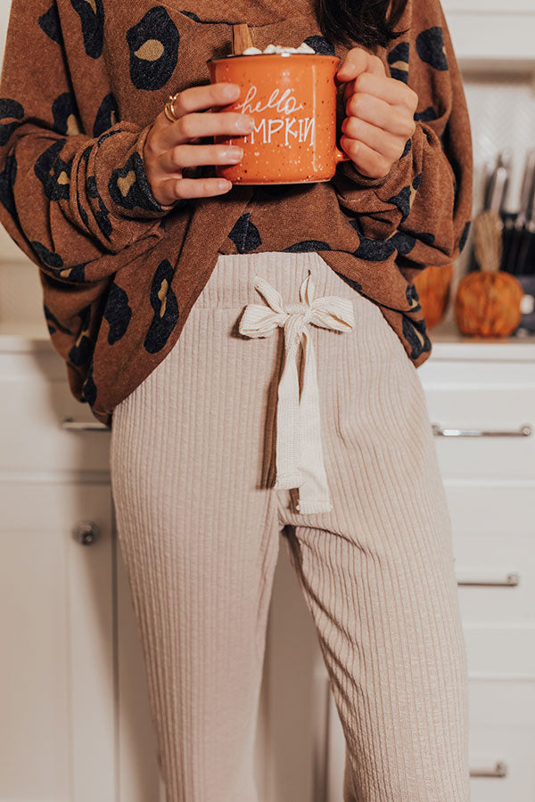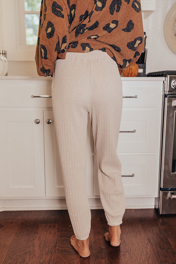 Stay on trend while also staying cozy in these adorable cream colored joggers featuring ultra soft lightweight tight knit material with vertical ribbed texturing, a wide elastic waistline with a tie belt, and a flattering pants silhouette that falls into fitted mid-calf length hemlines!