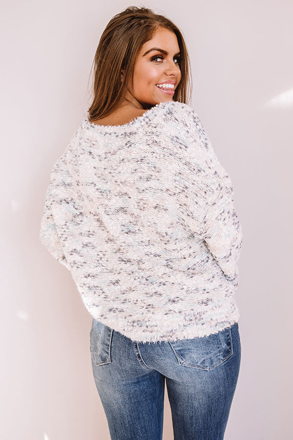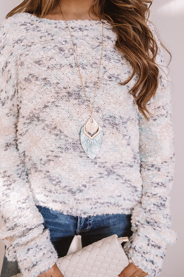 You are sure to be cozier than the rest when you wear this adorable white sweater featuring soft lightweight tight knit material featuring popcorn knit texturing, a subtle colorful diamond pattern, a high rounded neckline, long loose sleeves with fitted cuffs, and a relaxed silhouette that falls into a straight hemline! This charming piece styles beautifully with distressed ankle skinnies, a matching statement necklace, and a neutral bootie and clutch, but it can also be worn with some frayed black skinnies, "The Jess Faux Leather Heel in Natural," and "The City Life Felt Hat in Iced Latte!"