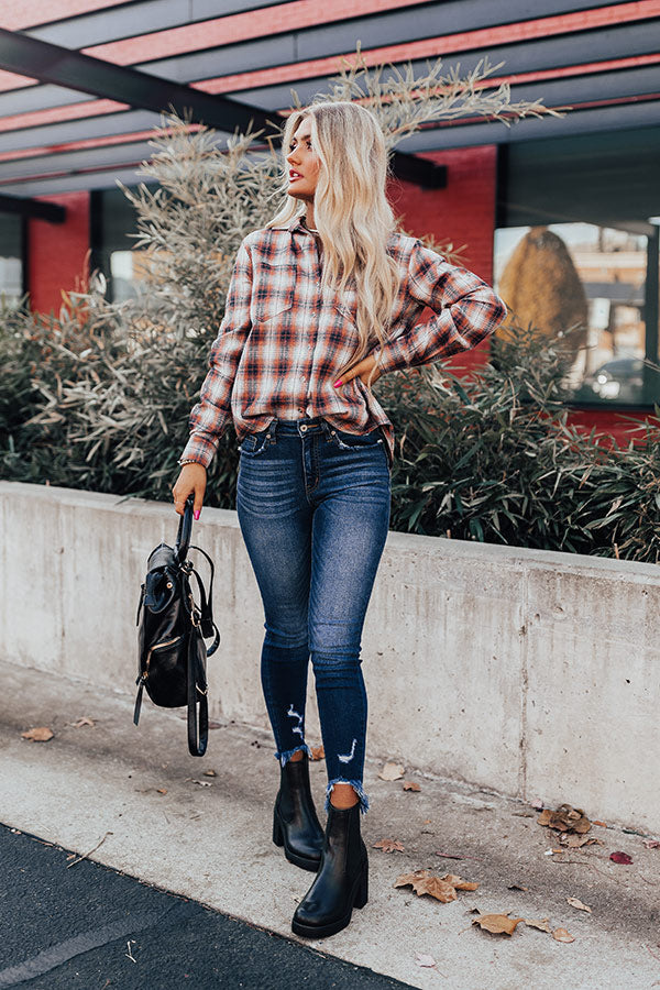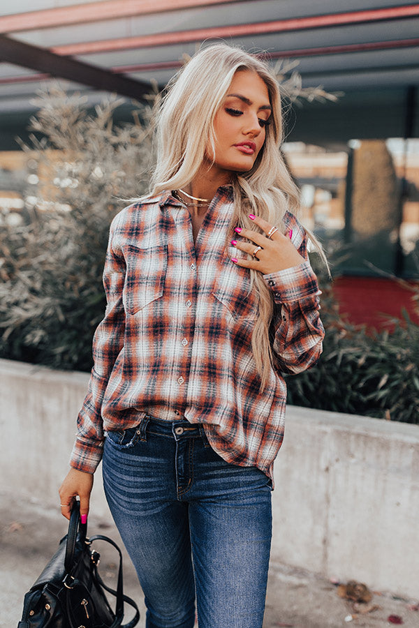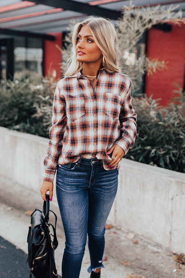 Cozy Accord Plaid Top in Rust
